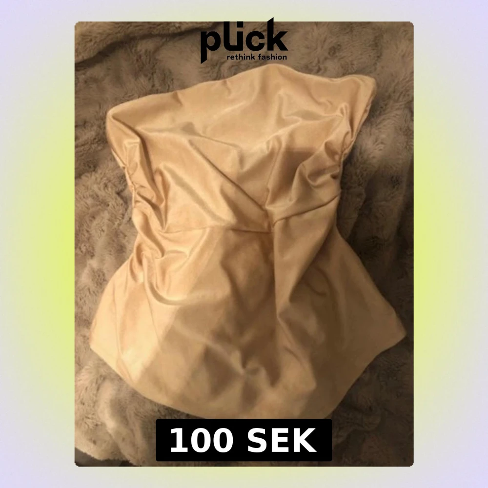 Säljer en snygg champagnefärgad tubtopp i glansigt satinmaterial. Toppen är axelbandslös och har en mjuk, draperad form som ger en cool och trendig vibe. Perfekt för dig som vill sticka ut med en stilren och chic look.