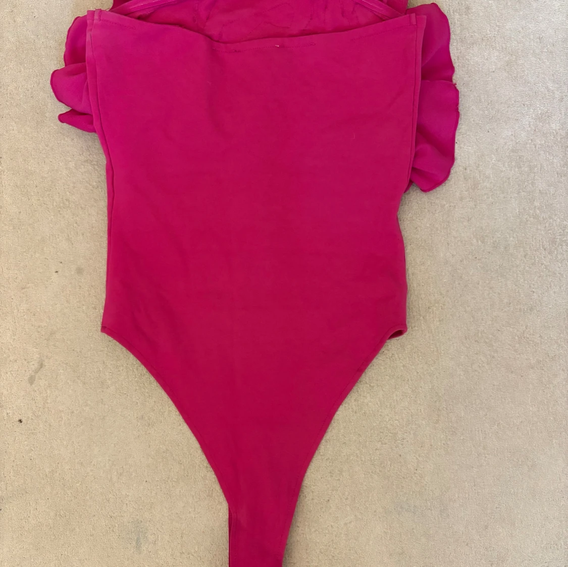 Jättefin rosa body från Zara med volanger på! Perfekt för fest!! Den har en liten defekt som jag visar på 3e bilden!!