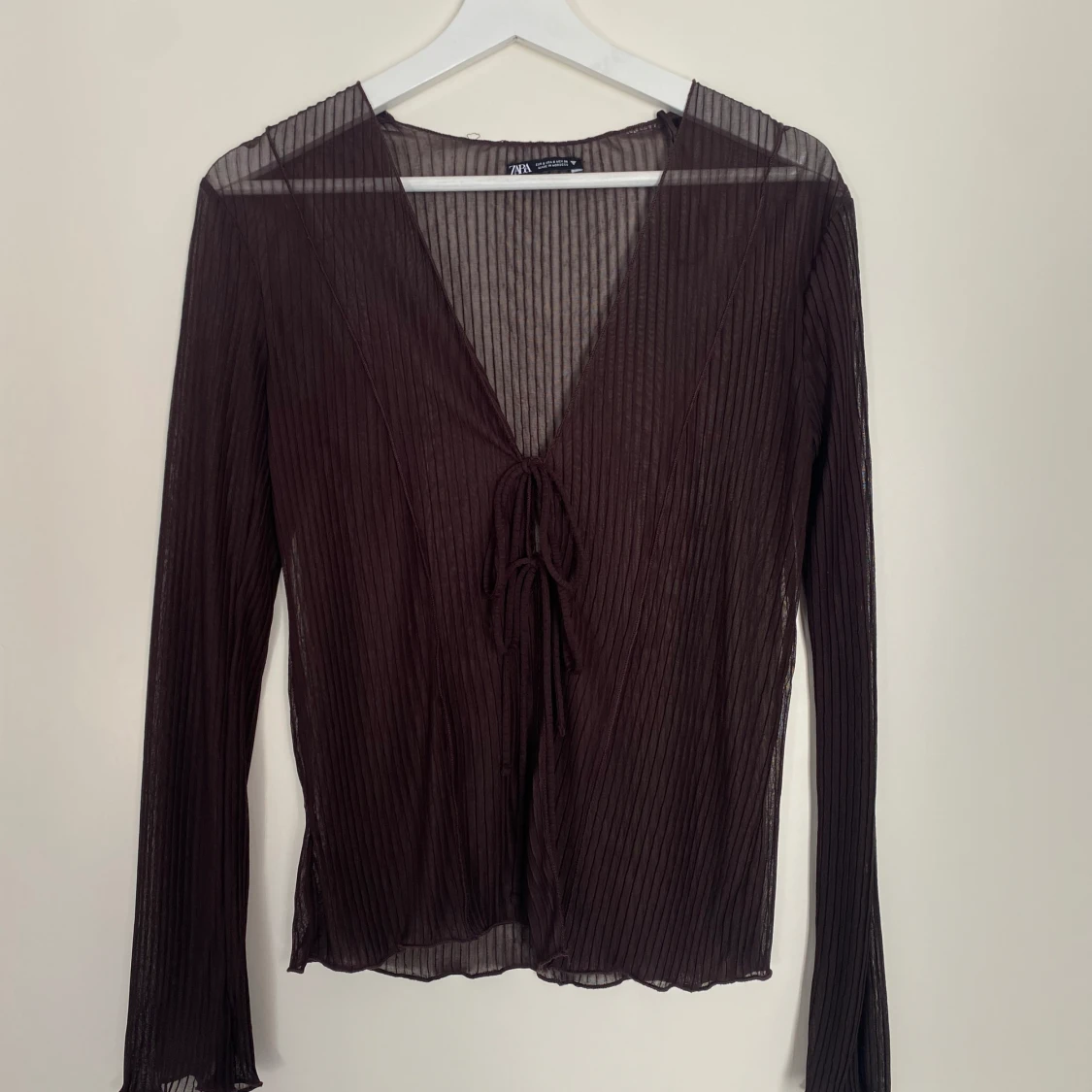 Snygg brun plisserad topp från Zara med två knyten fram 🤎Slutsåld.