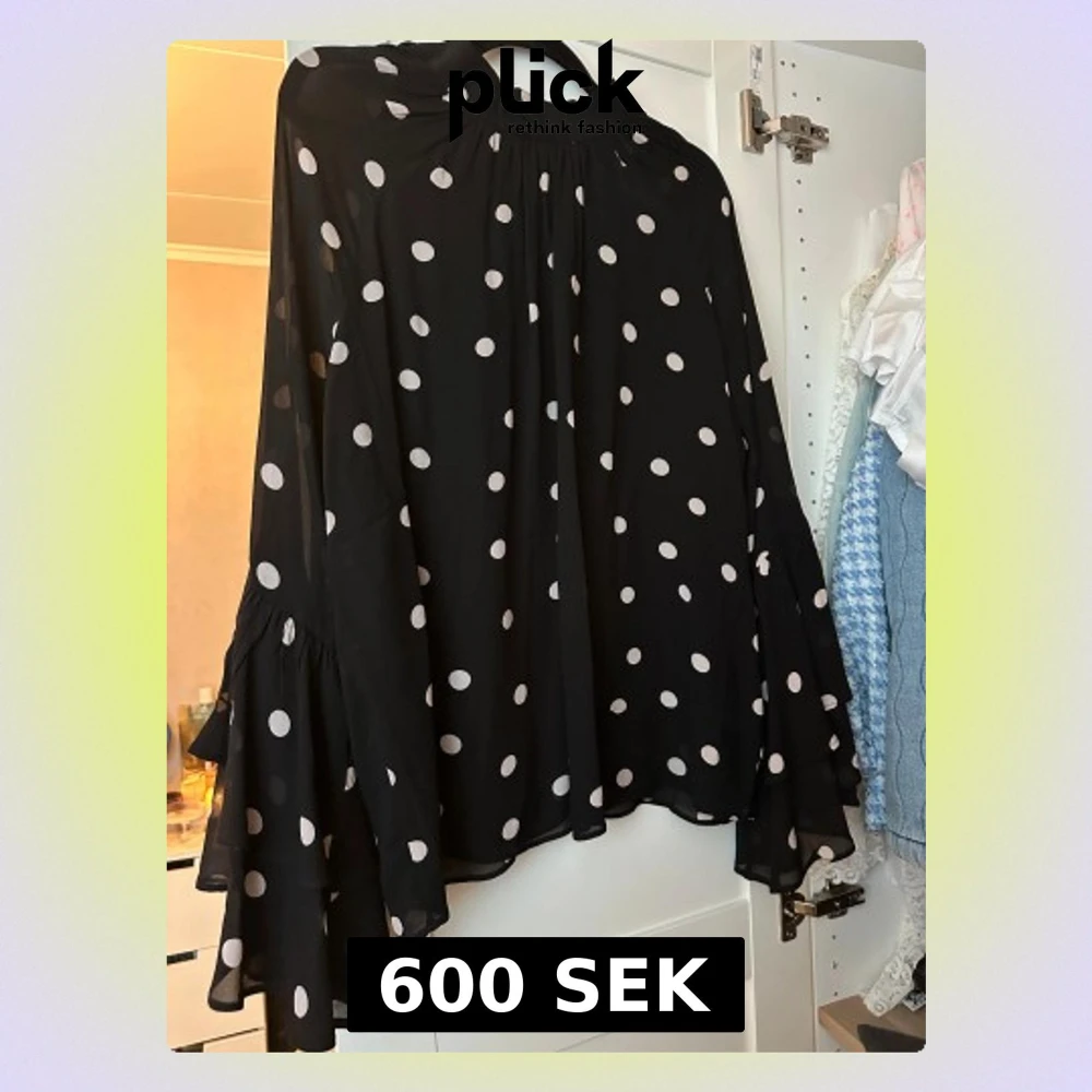En svart blus med vita prickar och vida volangärmar. Blusen är luftig i storlek XS, men passar även S. Aldrig använd. Från & Other Stories🖤