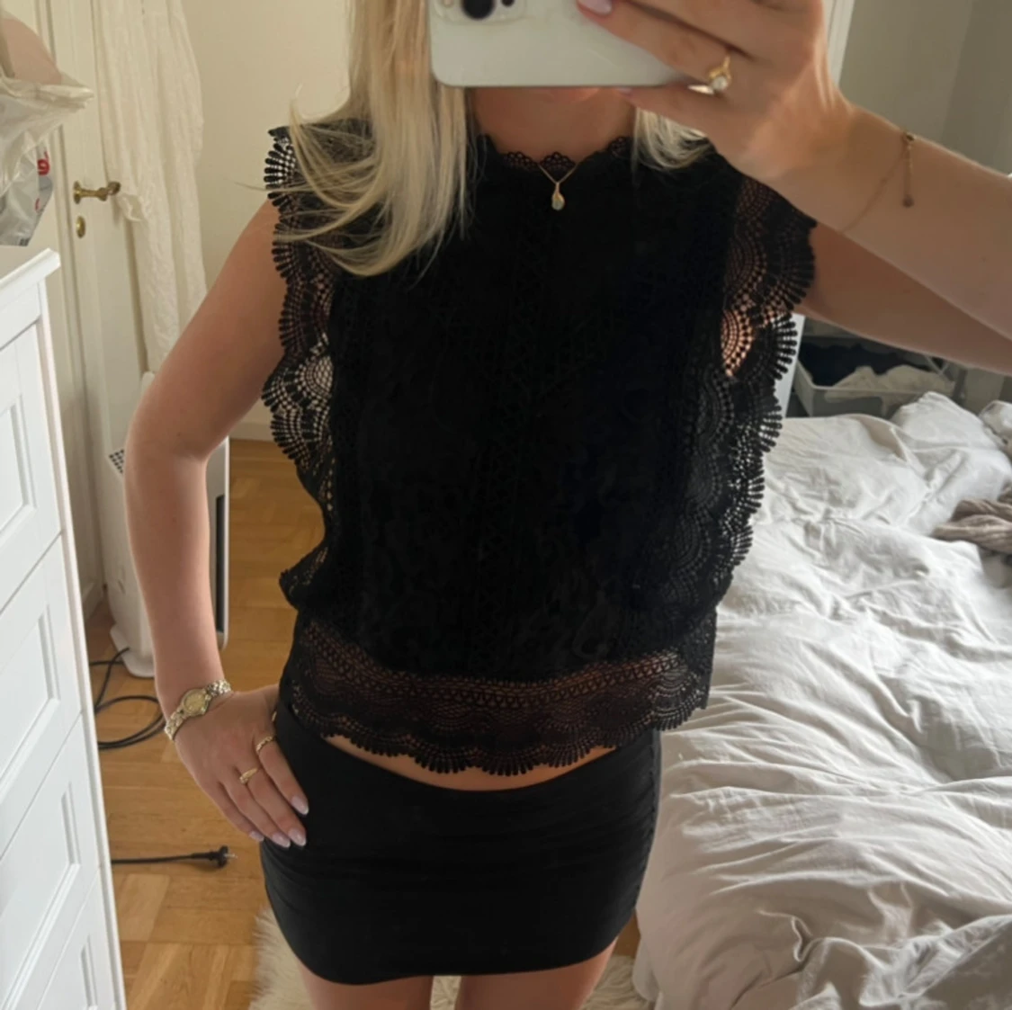 Supersnygg festtopp.đ Med massa spetsdetaljer och dragkedja bak som inte syns, knappt anvĂ€nd, skriv för fler bilder!! Nypris 450 kr