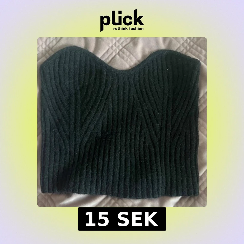 Snygg svart ribbad tubtopp med en hjärtformad urringning. Perfekt för att skapa en stilren look. Passar bra till både jeans och kjol.