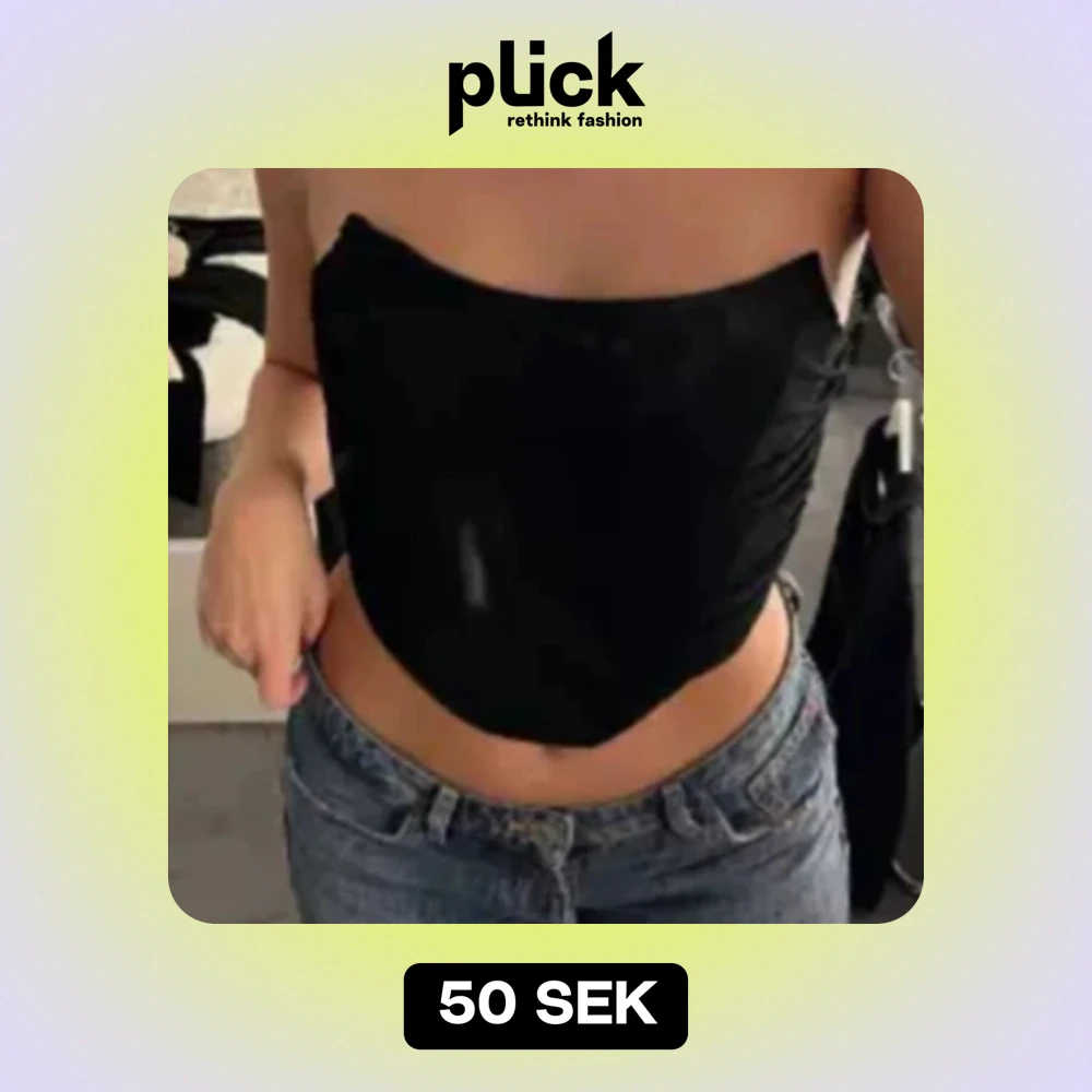 Säljer en svart festtopp som är köpt av en annan här på plick därav lånad bild. Den är aldrig använd🩷