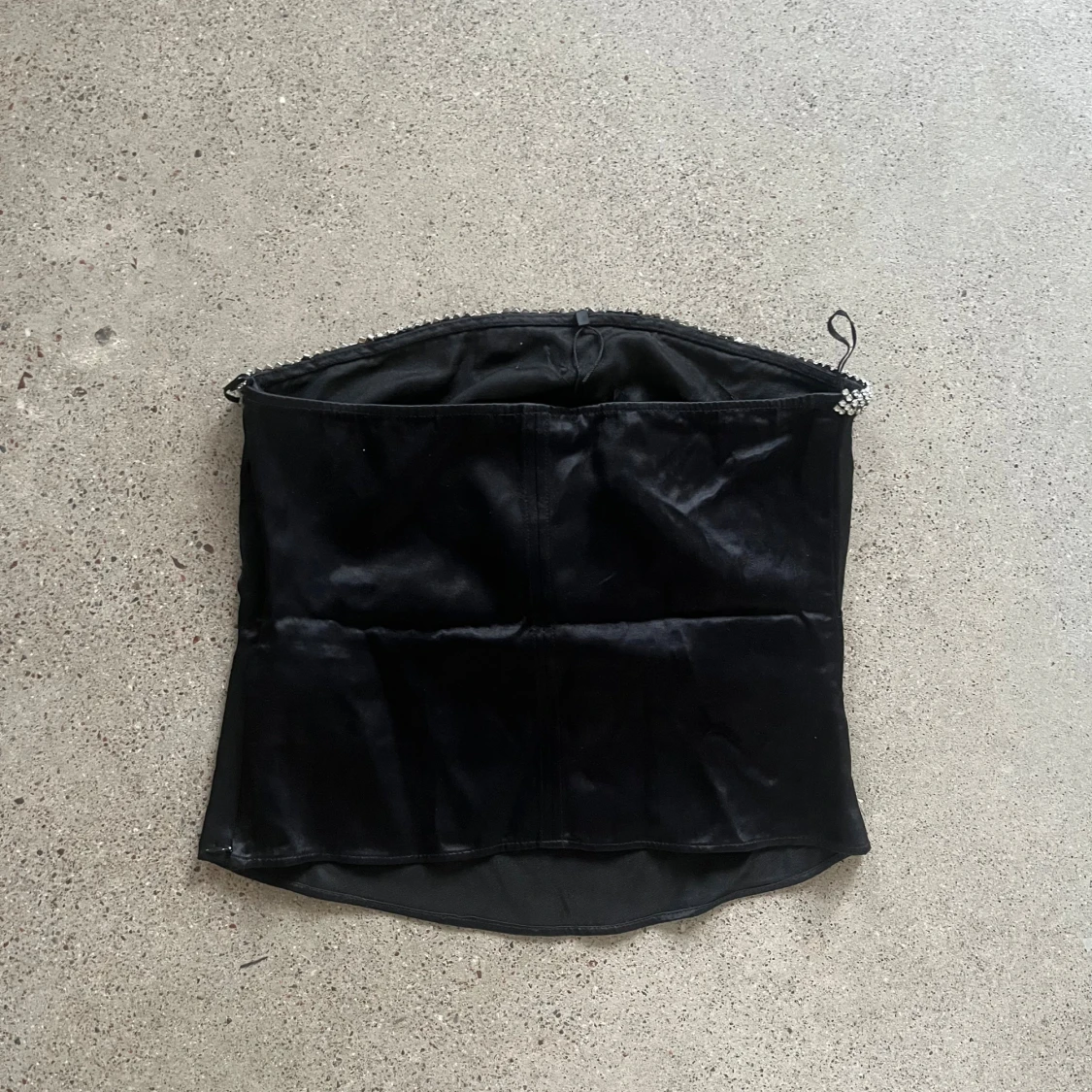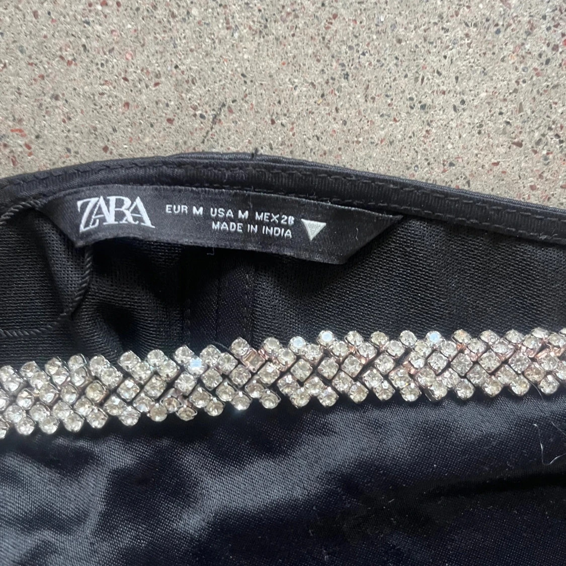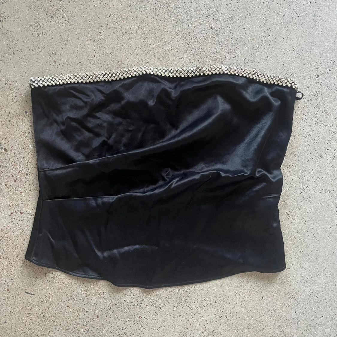Säljer en fin svart festtopp med strass från Zara i storlek M.