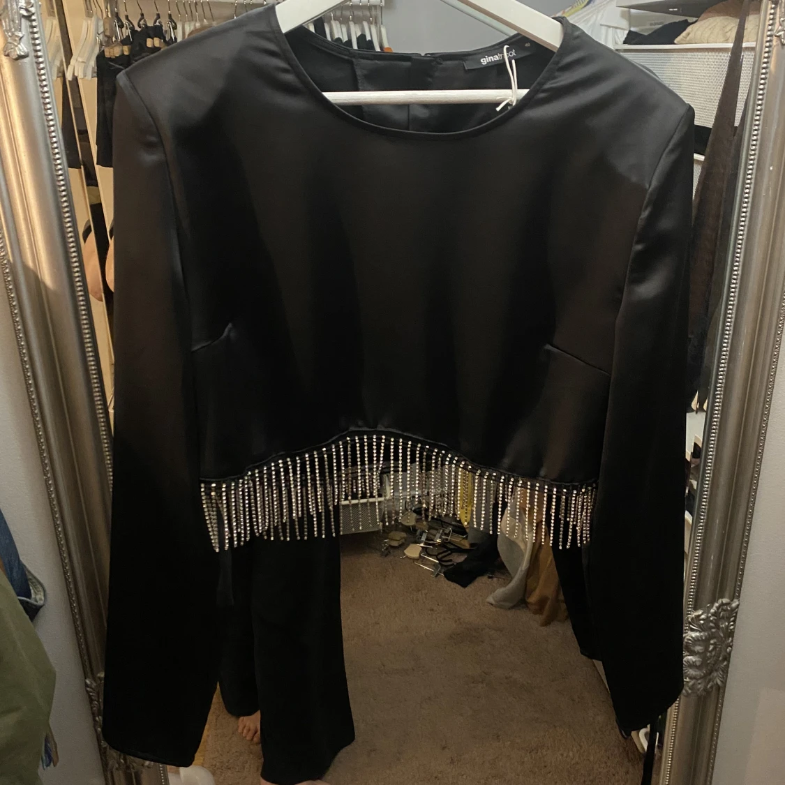 Jätte snygg topp för en festligare kväll. Siden & detaljer i strass silver. Aldrig använd