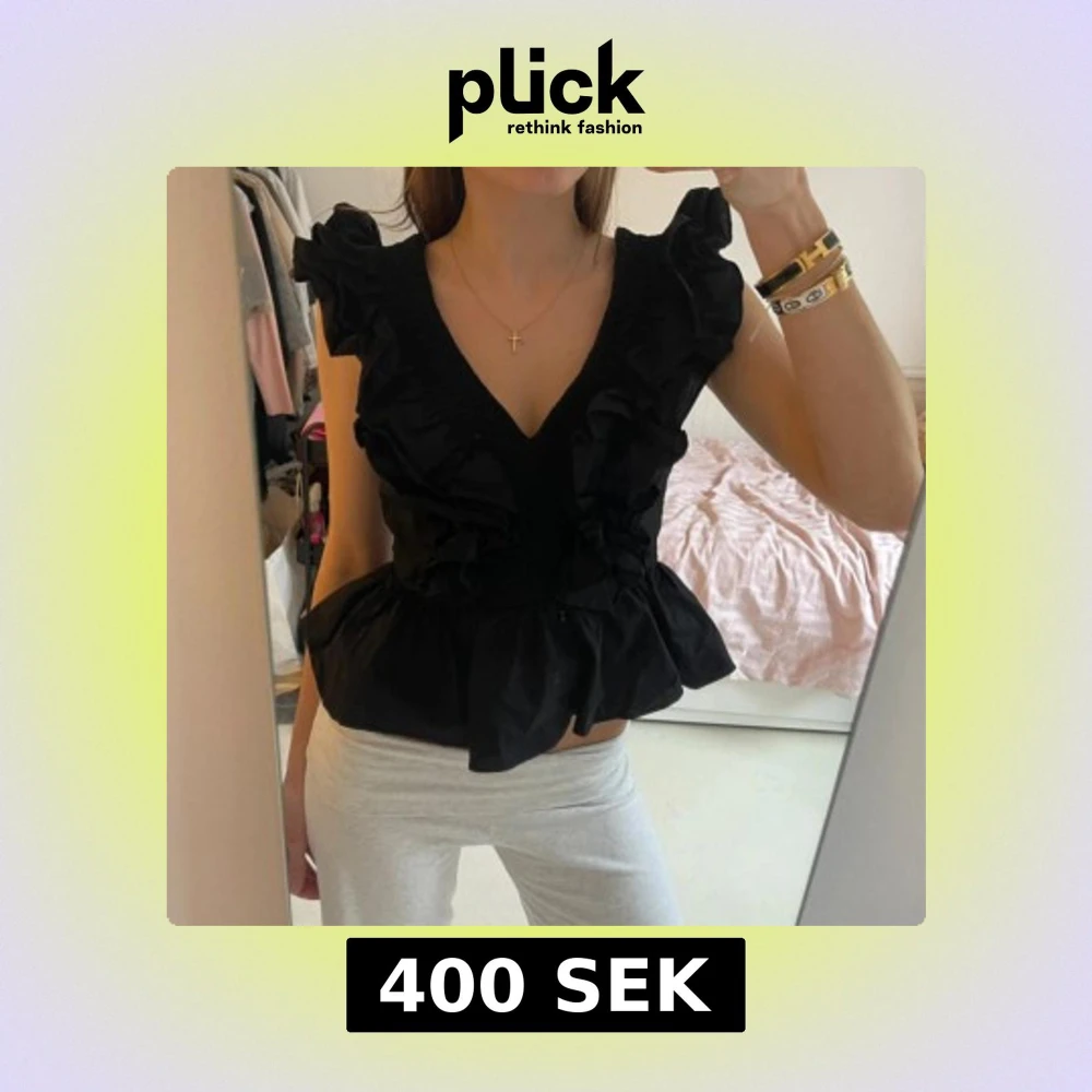 Superfin svart volang topp från hm, lånade bilder utav tjejen jag köpte av på vinted. Storlek 38🩷