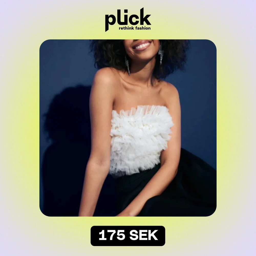 Säljer denna festliga och så snygga tub toppen från Gina Tricot i modellen ”frill tube top-beige” Endast använd en gång och inga fläckar eller liknande. Köpt för 359kr (Togs ner med egna bilder så skriv om det önskas)