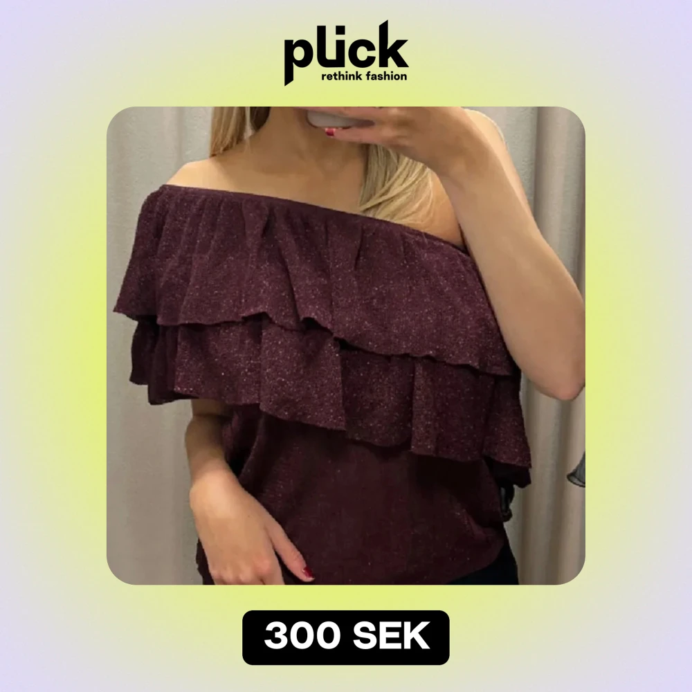 Säljer en superfin vinröd offshoulder topp från mango. Den har flera lager av volanger och glittrig som gör den perfekt för fest eller jul. Den är i storlek L, men passar mig som har storlek S☺️ skriv gärna om ni har frågor eller vill ha fler bilder!!