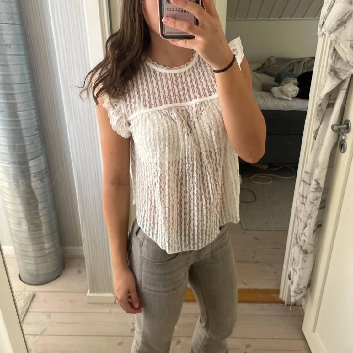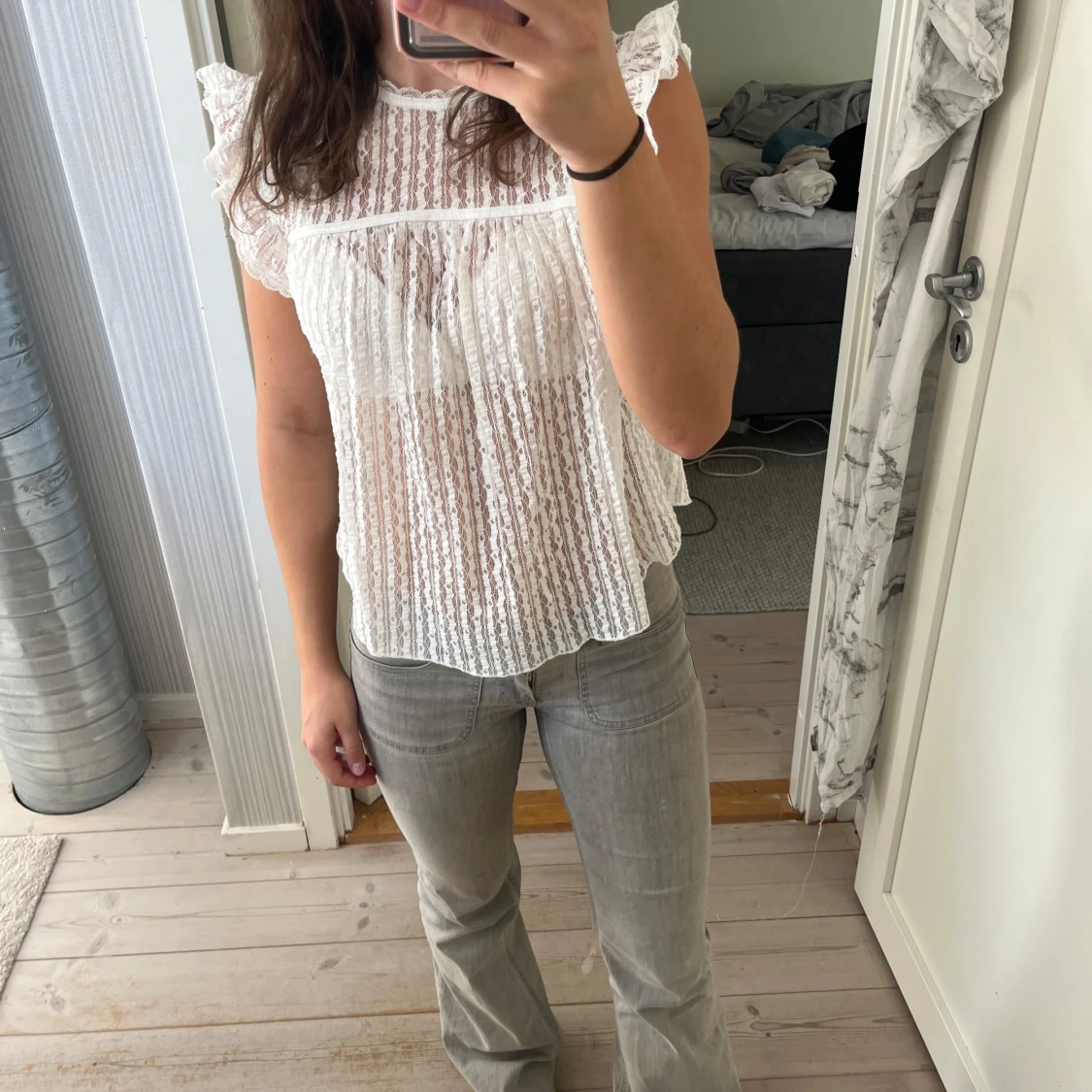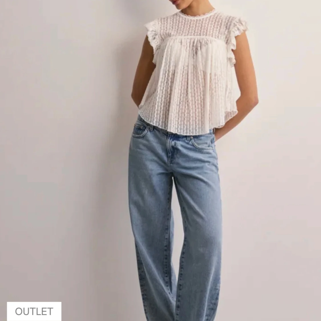 Vit spetsblus med volangärm från Nelly