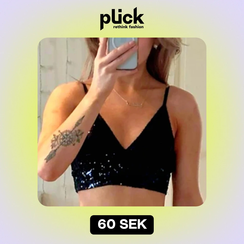 Festtopp med paljetter. Dragkedja i ryggen. Devided stl XS. Använd 1 gång.