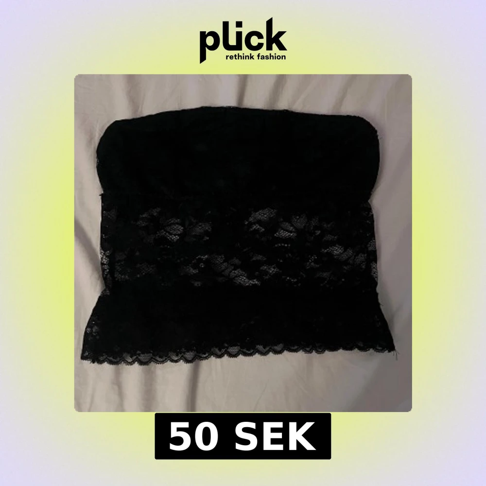 Säljer en svart tubtopp i spets med blommigt mönster. Den är i storlek S och kommer inte till användning, har inte heller använt den innan💕