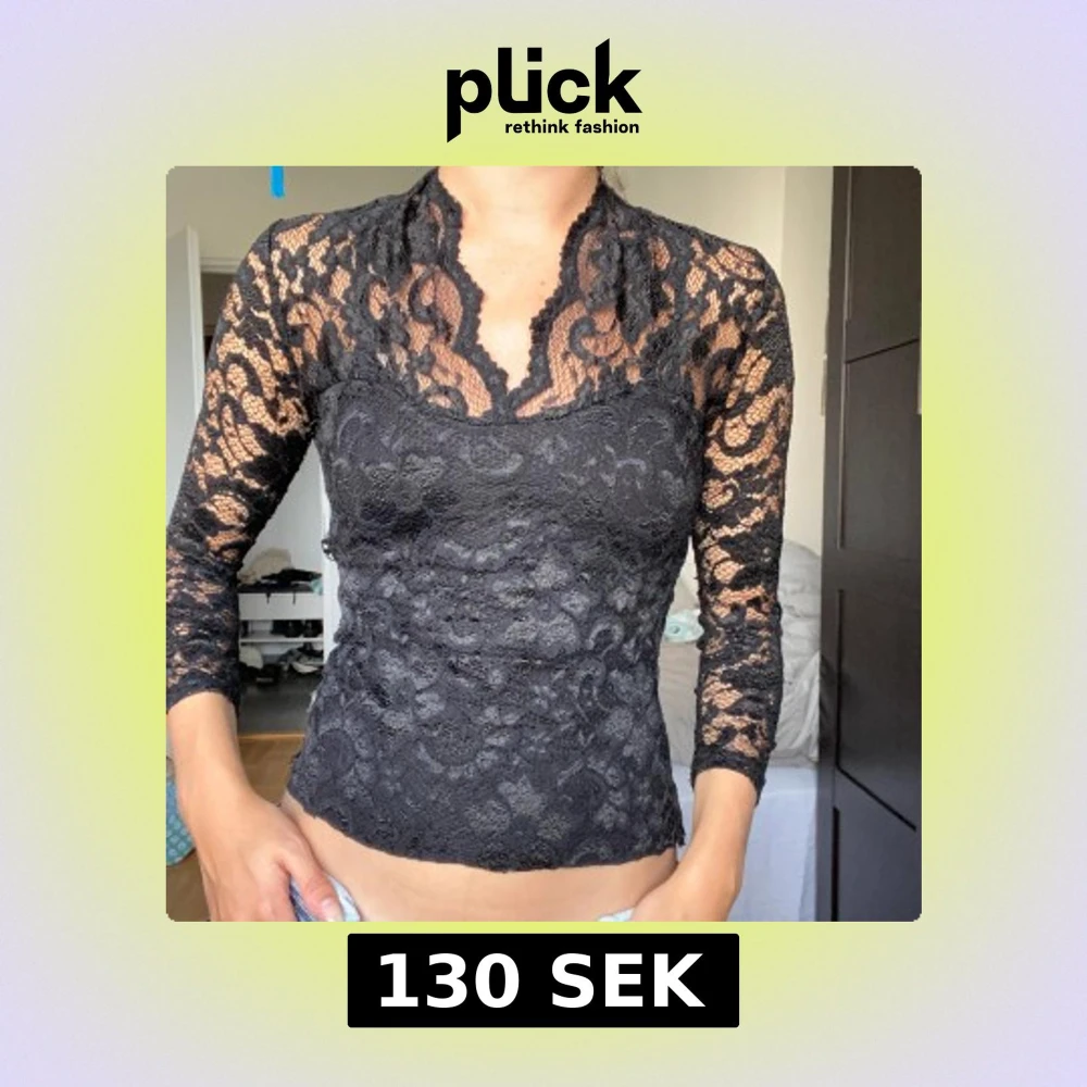 Supersnygg svart blus i spets med lång ärm och v-ringad hals. Transparent upptill och på ärmarna, med täckt bröstparti. Perfekt för dig som vill ha en elegant och trendig look med coola detaljer.