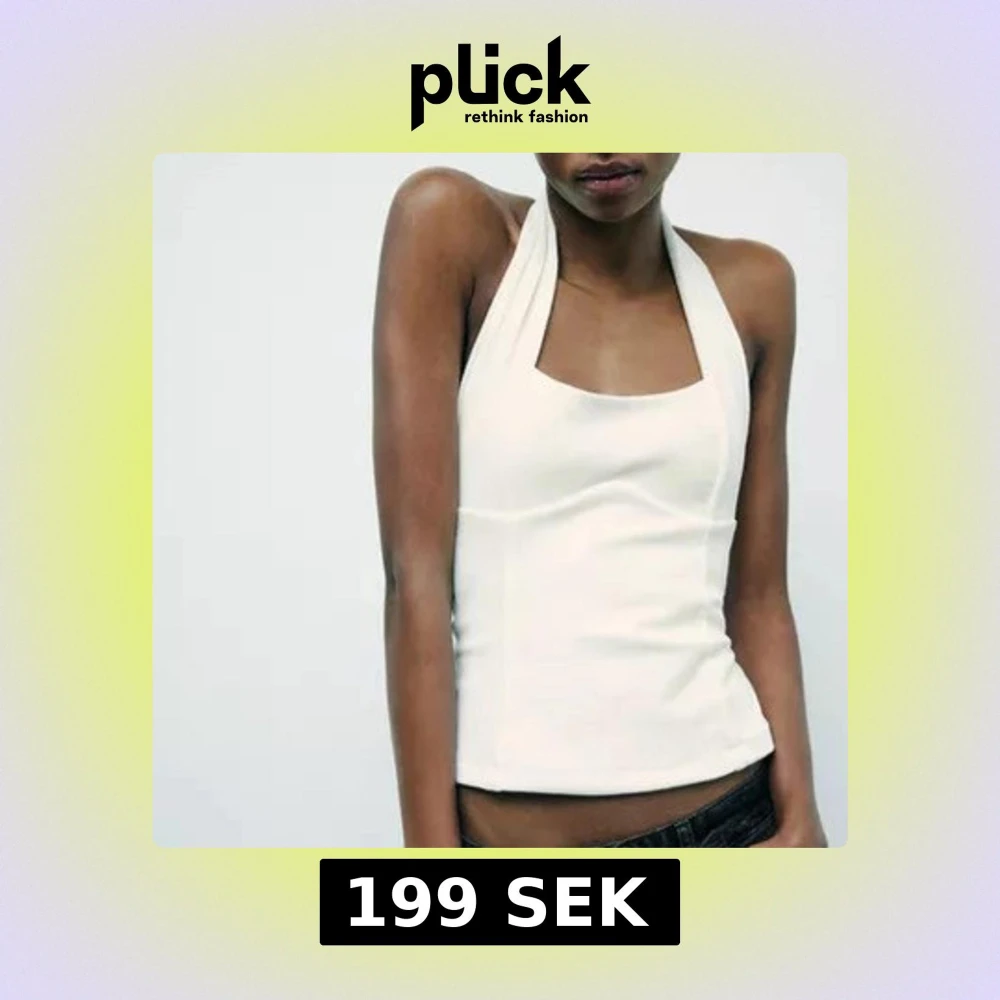 Snygg vit halterneck linne med en stilren design. Perfekt för varma sommardagar eller som ett lager under en jacka. Den ärmlösa designen ger en modern och luftig känsla.