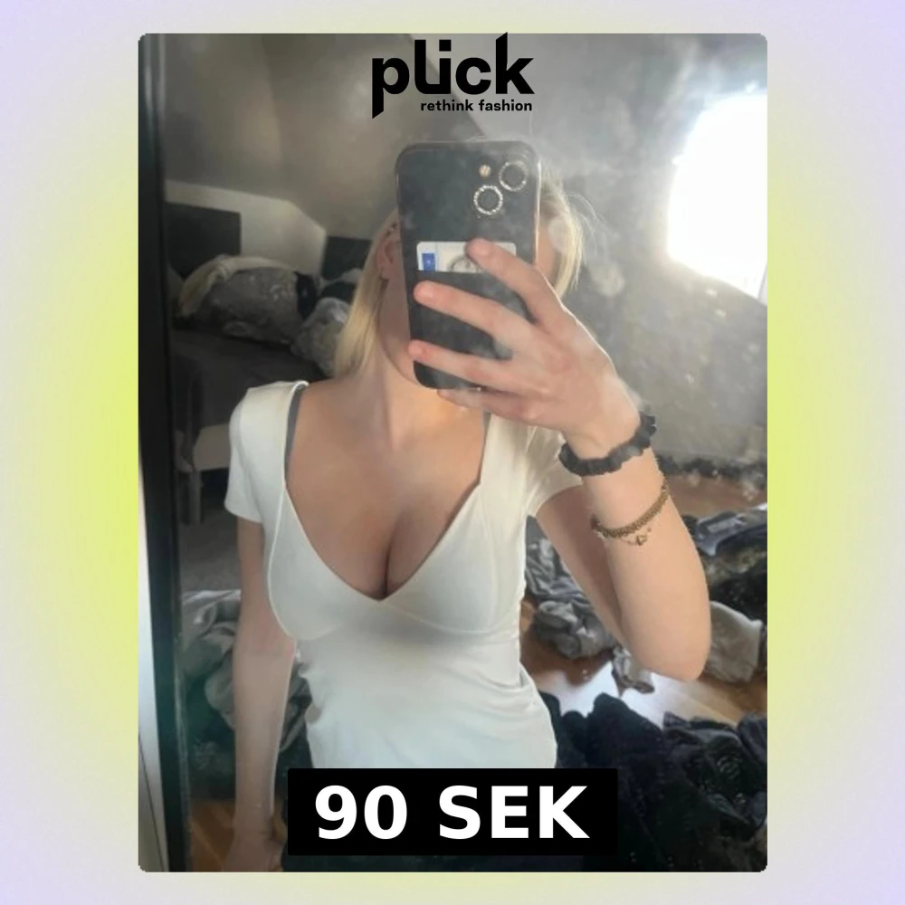 Säljer en vit topp med djup v-ringning och korta ärmar. Toppen har en figurnära passform och är tillverkad i ett mjukt, stretchigt material som sitter snyggt på kroppen. Perfekt att styla med jeans eller kjol för en trendig look.