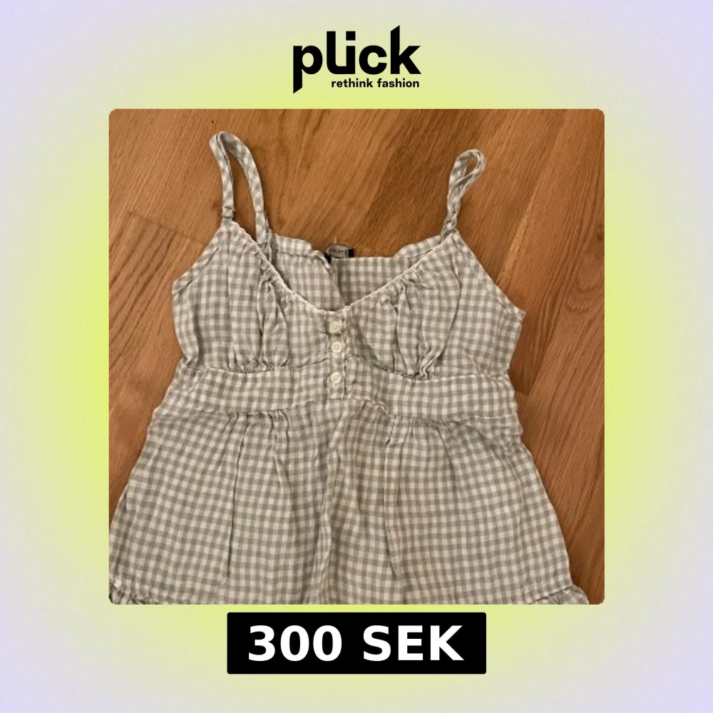 Söt rutig linnetopp från Brandy Melville med knappar framtill och smockdetalj i ryggen. Toppen har smala axelband och volangkant nedtill. Perfekt för en avslappnad sommarlook! Den är så så gullig och i jätte bra skick! Skriv om frågor osv. 💕💕💕 pris kan diskuteras