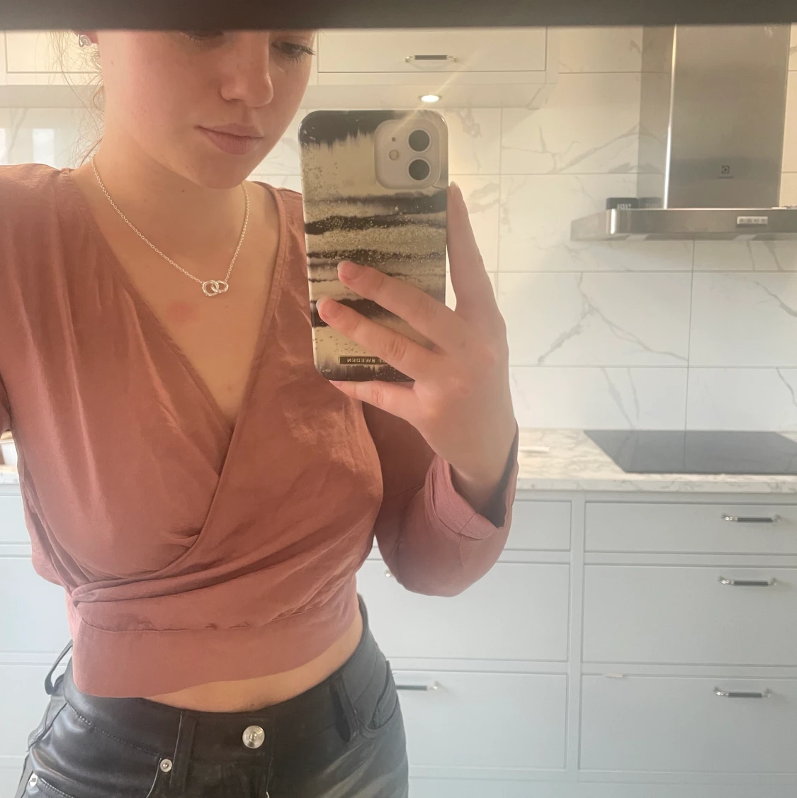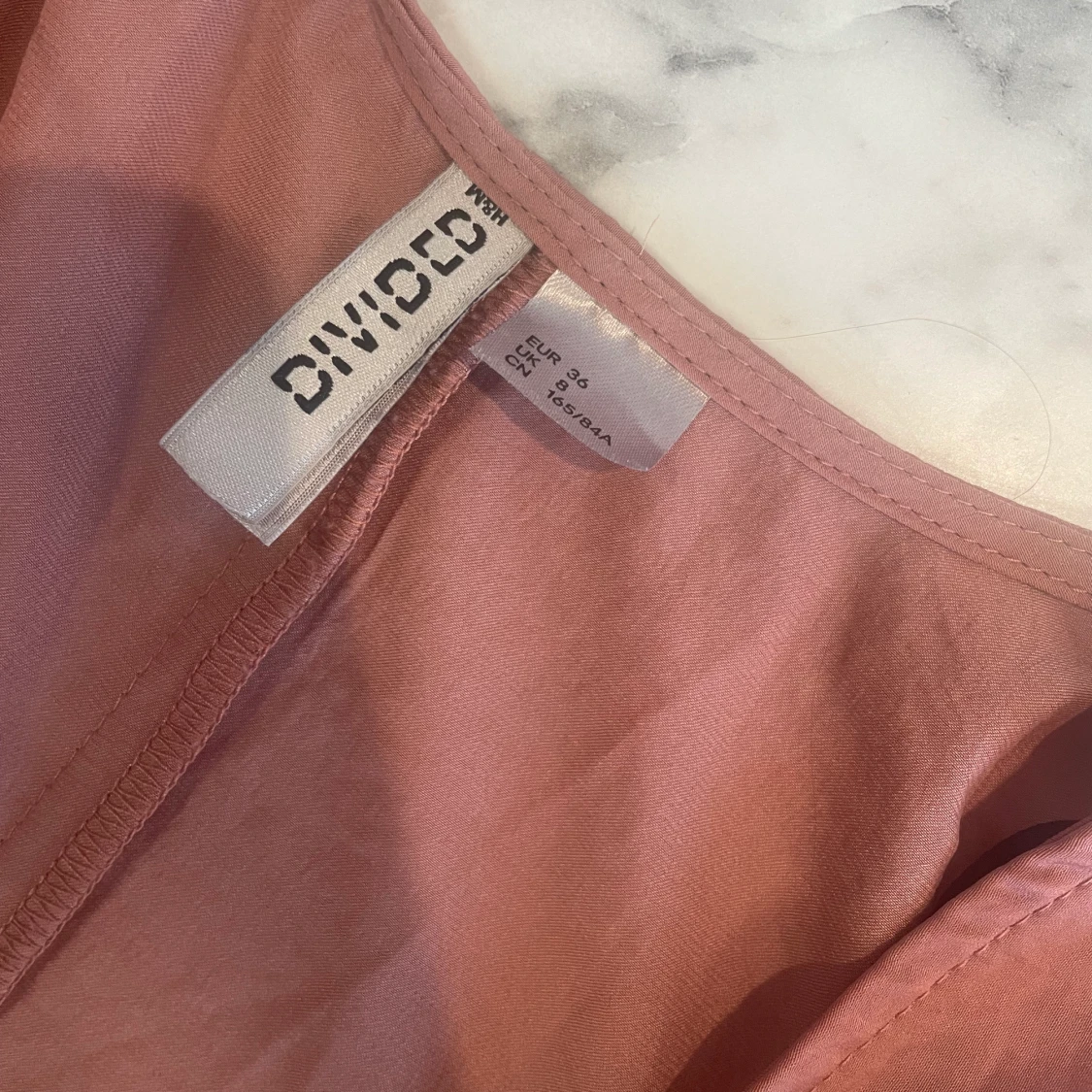 Långärmad blus från H&M med knytning och öppning i ryggen. Satin i materialet