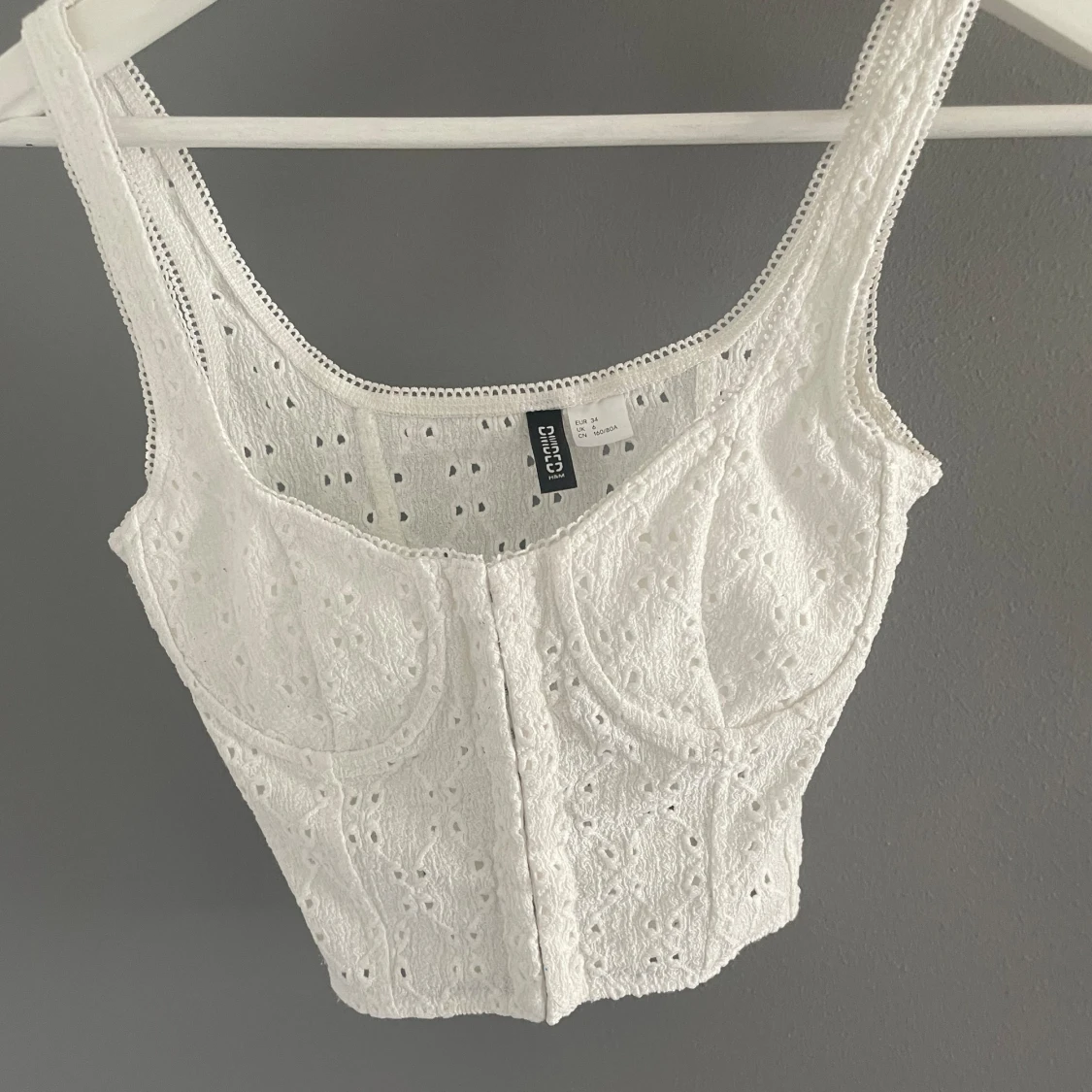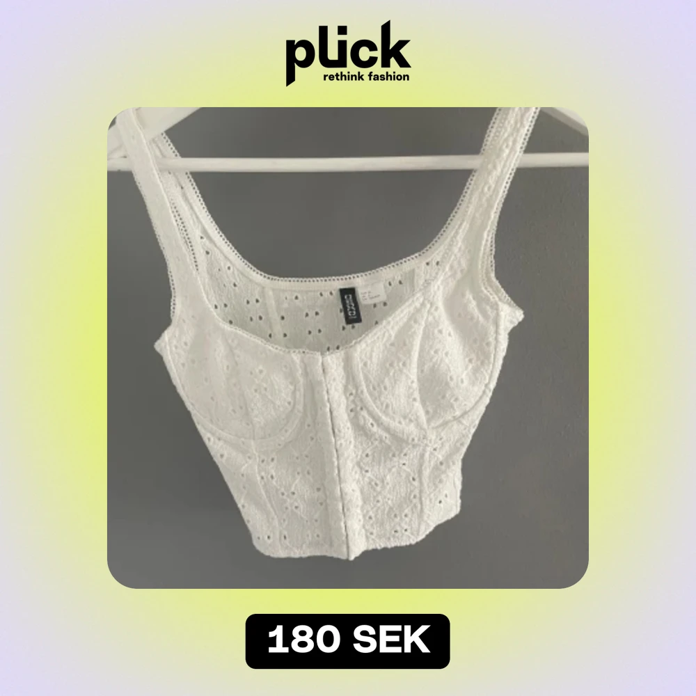 Jättefin korsettopp som knappt är använd pga för liten vid bysten. Kommer från H&M divided och är i storlek 34. Skulle säga passa A kupa eller eventuellt liten B kupa. Fint mönster och passar bra till sommaren/fest.