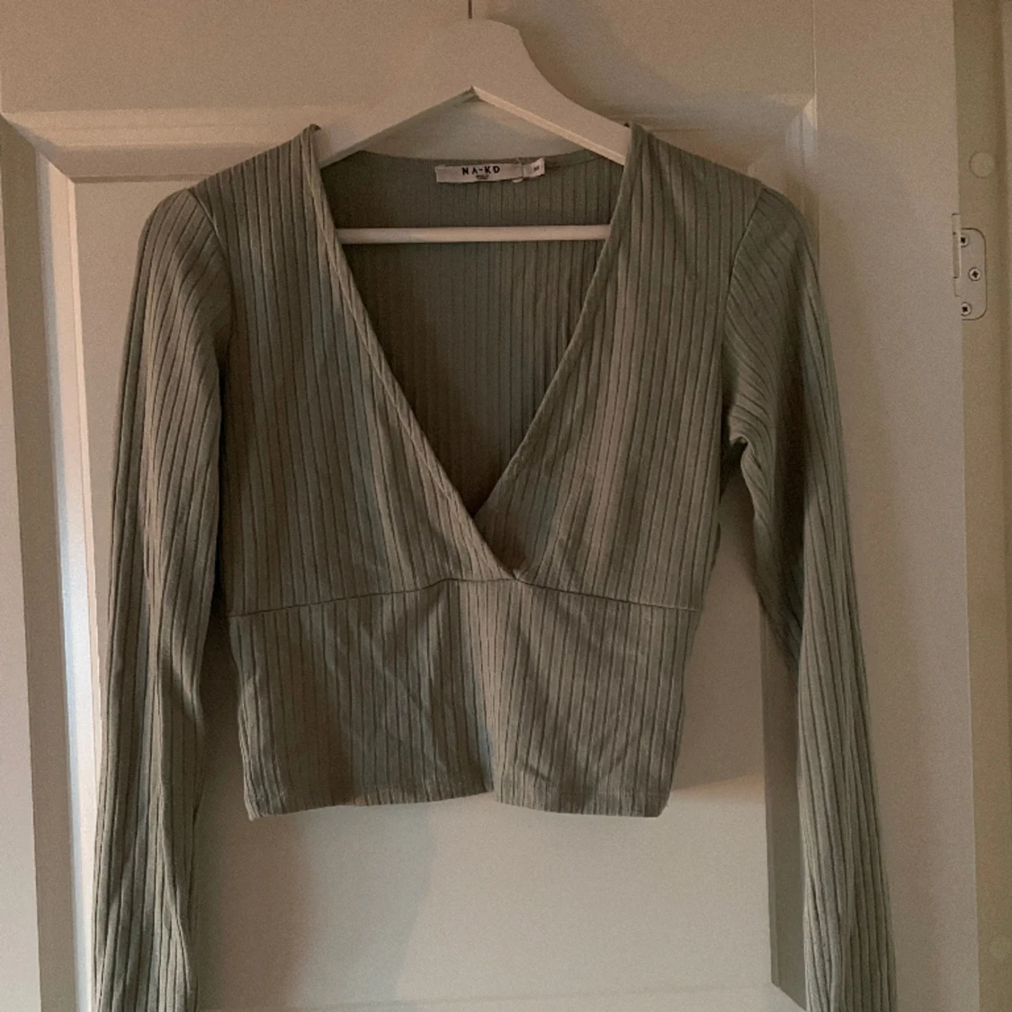 Säljer denna gröna topp från NAKD som endast är använd 1-3 gånger!!💕 den är i storlek S och har en fin v-neck☺️