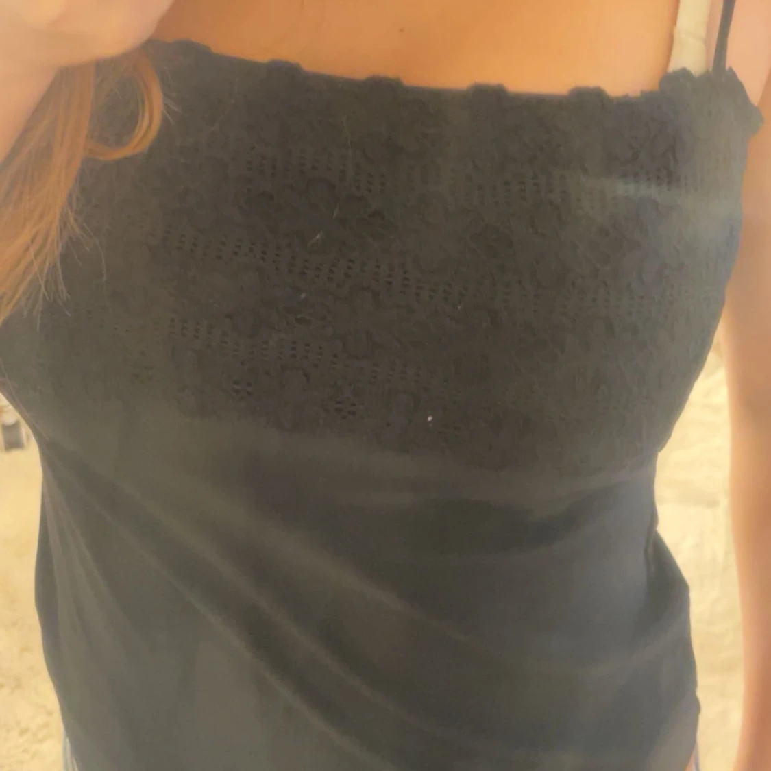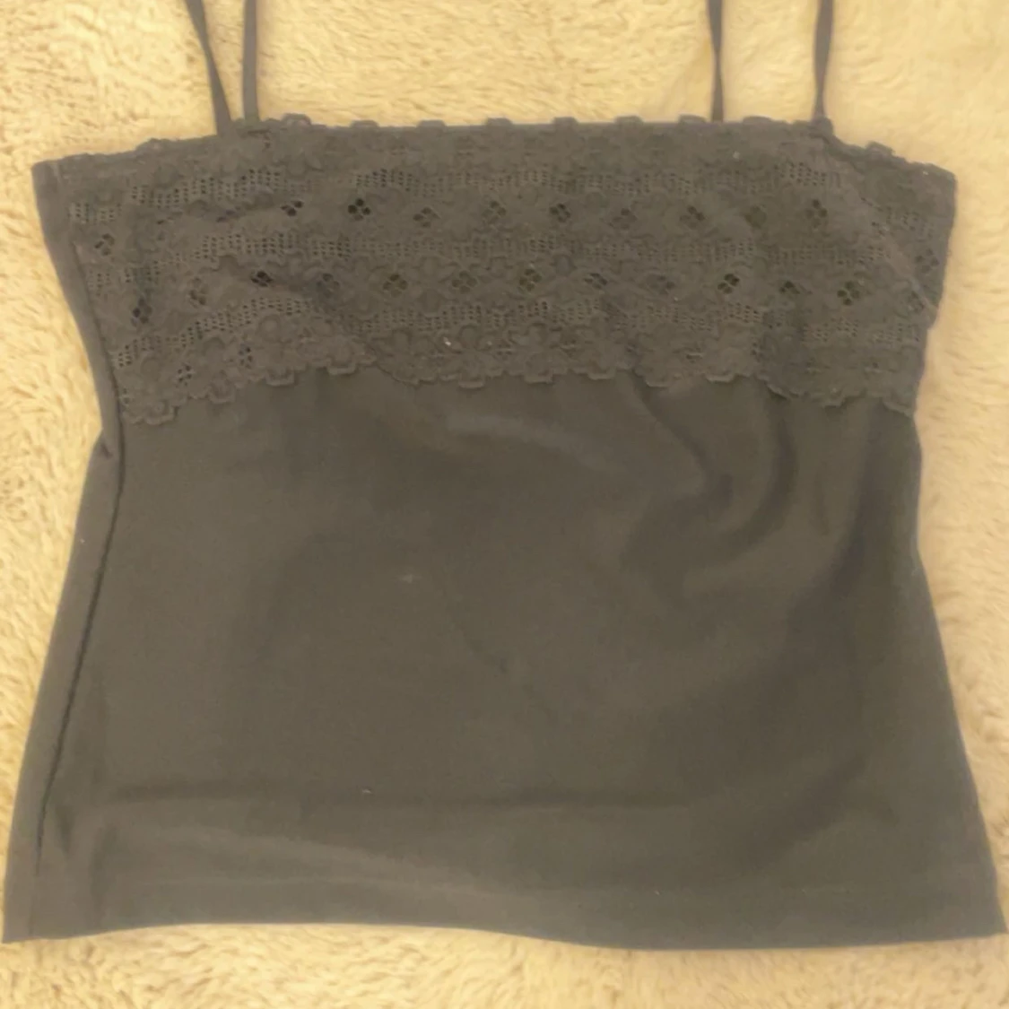 JĂ€tte fint svart linne med spetts vid bröstet, storlek M men jag som brukar anvĂ€ndas S tycker den passar super, sĂ€ljer pĂ„grund av den inte anvĂ€nds đ€