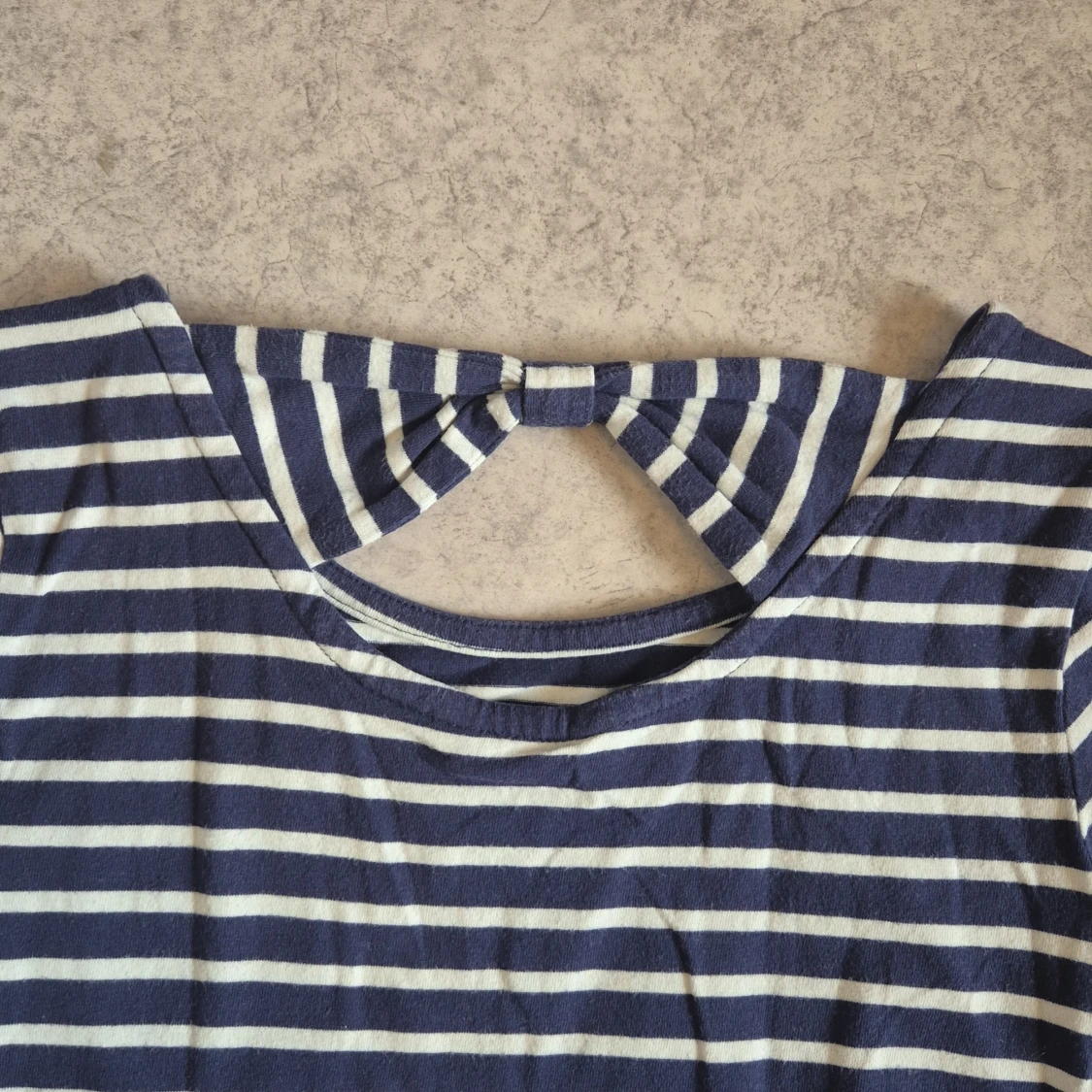 Fin topp med rosett-detalj i nacken, blå med vita ränder, en aning urtvättad men fortfarande fin!