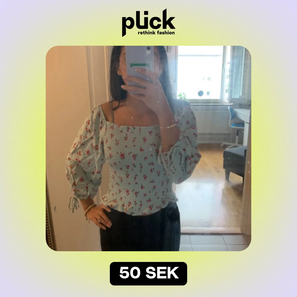Säljer en fin topp som inte kommer till användning. Den är lite ljusgrön men ändå lite turkos. Har även mäster av blommor.
