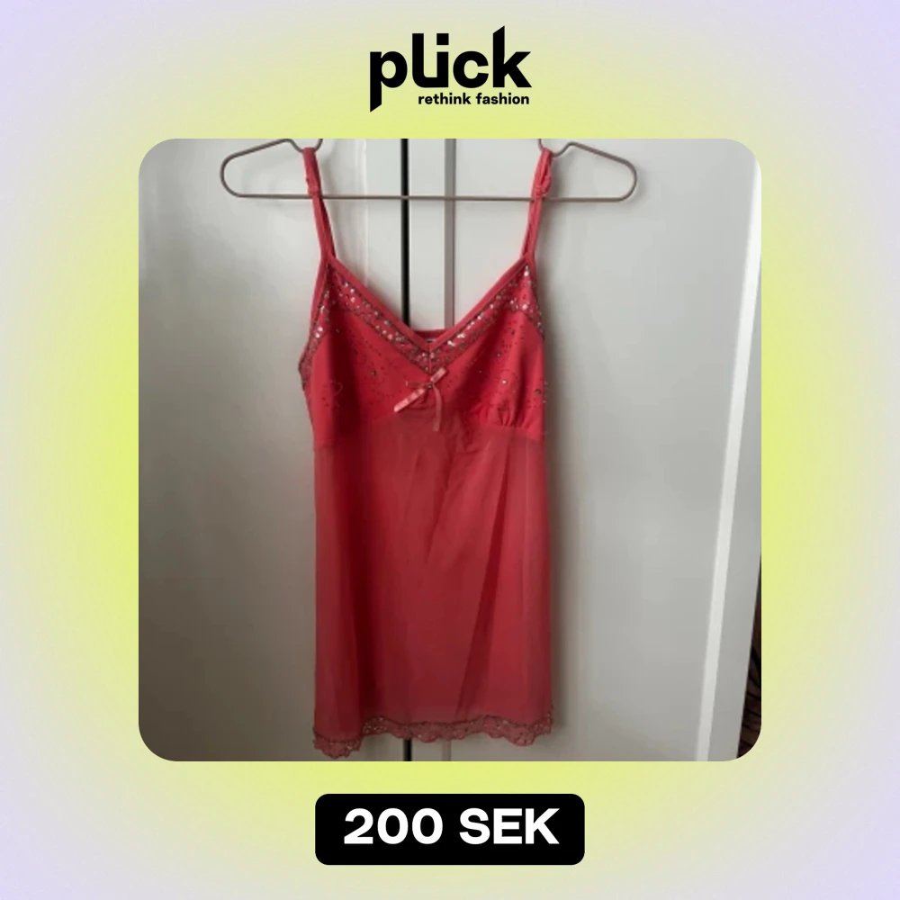 Ett jättefint transparent linne i färgen korall med glitter som jag köpt secondhand🫶🏼 i storlek S och har reglerbara axelband, säljer för att den inte längre används💗 skriv i DM för fler frågor och pris kan diskuteras!💗