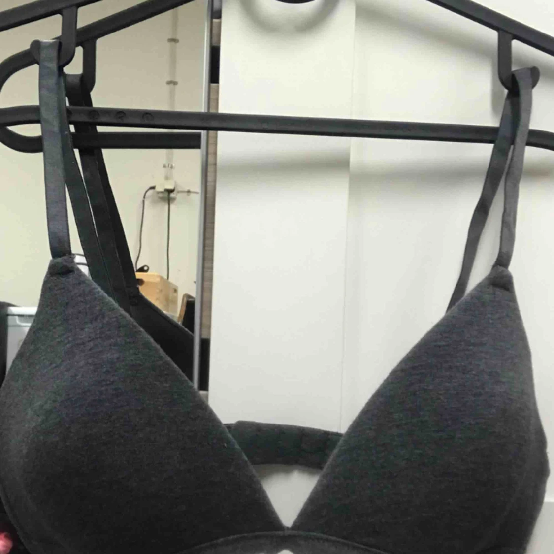 Bygellös bh från hm. Liten i passform. Sitter superskönt och är i bra skick. Den vita bh-n som jag har lagt upp är samma modell och storlek och kan skickas med gratis om man vill. Kan mötas upp i Skåne (gärna Lund/Malmö) annars står köparen för frakt.