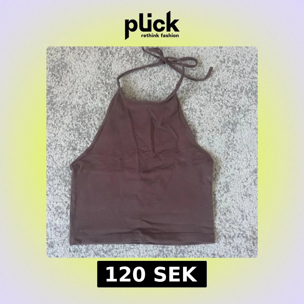 Säljer en brun halterneck linnetopp från Bik Bok i storlek S. Toppen har knyt i nacken och är ärmlös med en croppad passform. Endast använd fåtal gånger och i väldigt fint skick.