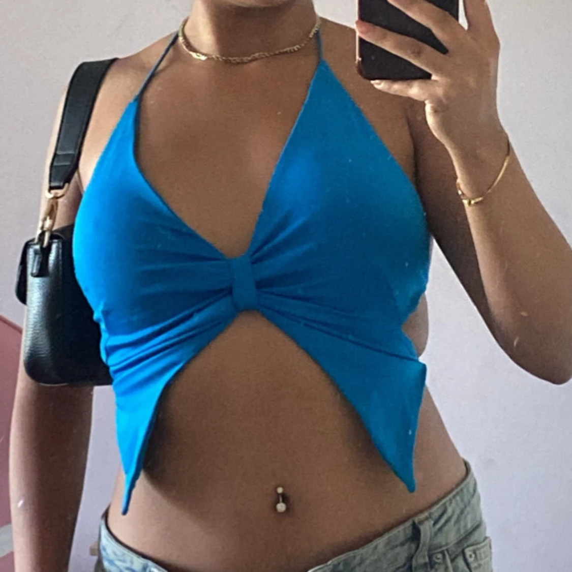 Bra skick blå sommar topp perfekt till utgångar