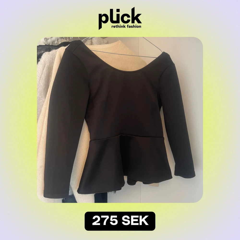 Så snygg svart topp med peplum och en rosett i ryggen. Den har en öppen v-ringad rygg. Perfekta festtoppen men går även att klä ner och ha när som helst. Vill se hur mycket jag kan få för den därav priset! ❣️
