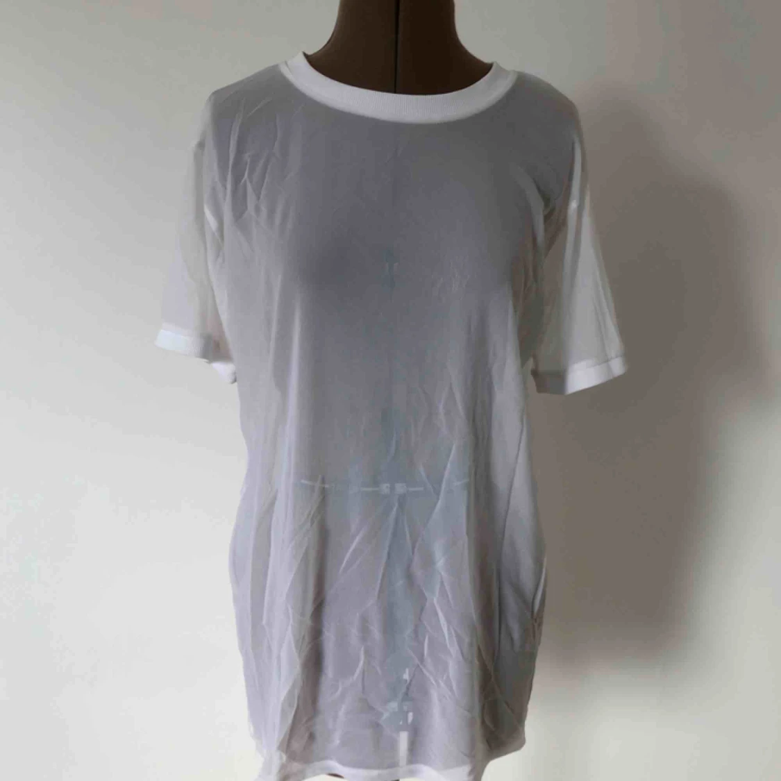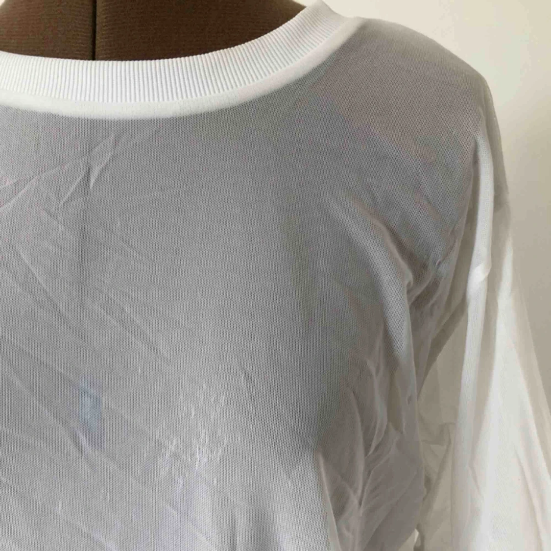 Supercool vit tröja/klänning i mesh-tyg. Bra skick, några slitningar på framsidan (se bild 2), men det är inget som stör.