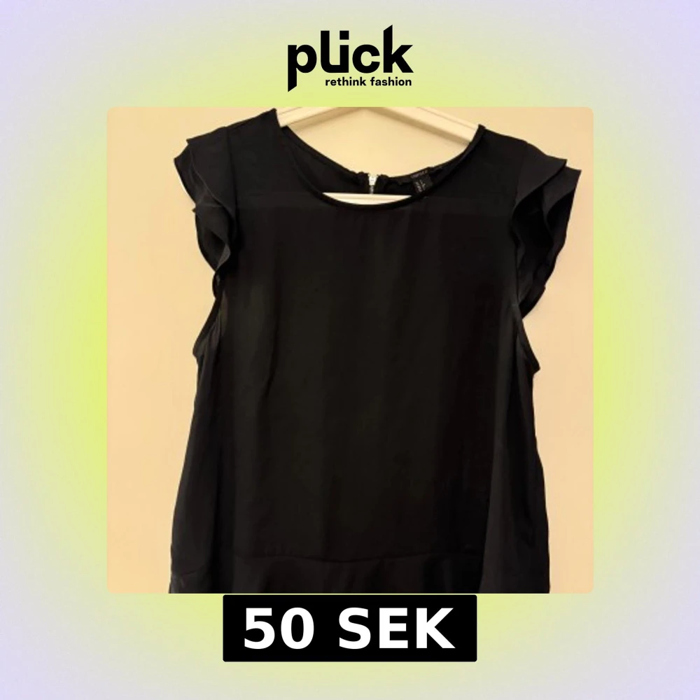 Stilren svart blus från Forever 21 med volangdetaljer på ärmarna och rund halsringning. Toppen är ärmlös och har en synlig dragkedja i ryggen. Blusen är i jätte fint skick!