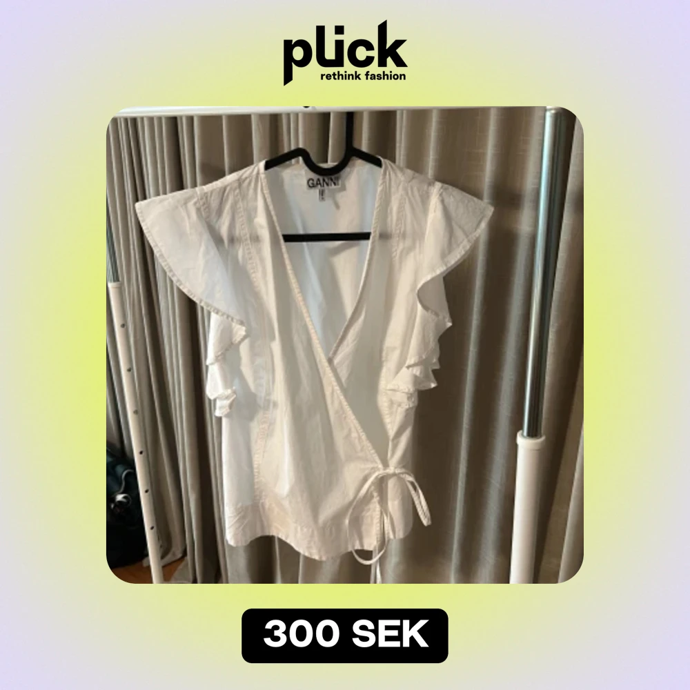 Omlotttopp från Ganni i mycket fint skick. Hel och ( ren) inga fläckar. Supersnygg till det mesta.