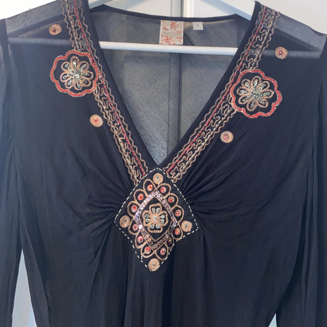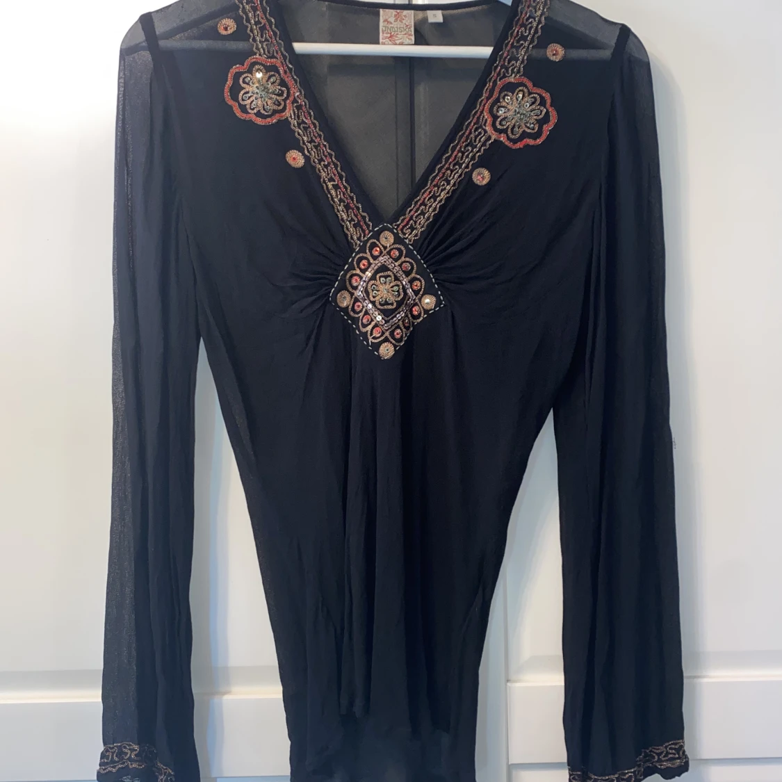 Genomskinlig svart topp med häftiga detaljer. Genomskinlig. Storlek S.