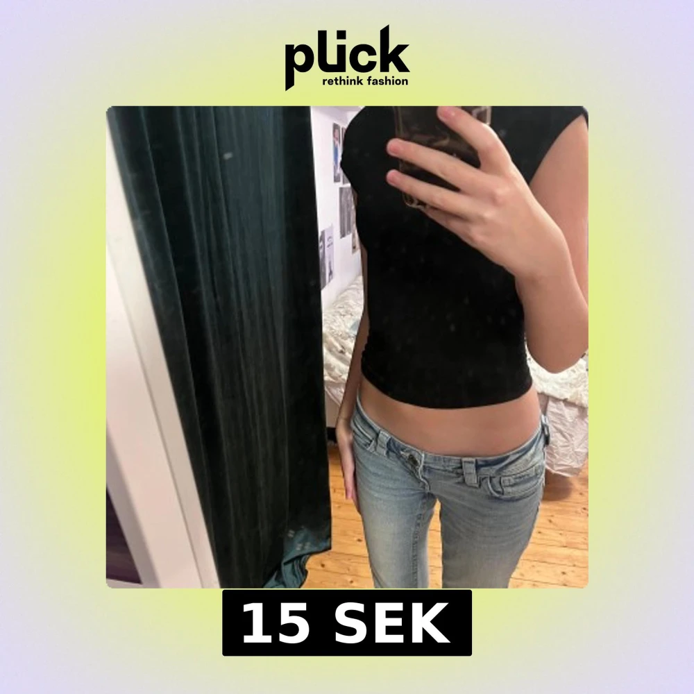 Säljer en svart croppad topp med öppen rygg och ärmlös design. Toppen har en tight passform och är tillverkad i mjukt stretchigt material, perfekt för dig som gillar minimalistisk stil och vill visa lite hud. Enkel och snygg att matcha med jeans eller kjol.