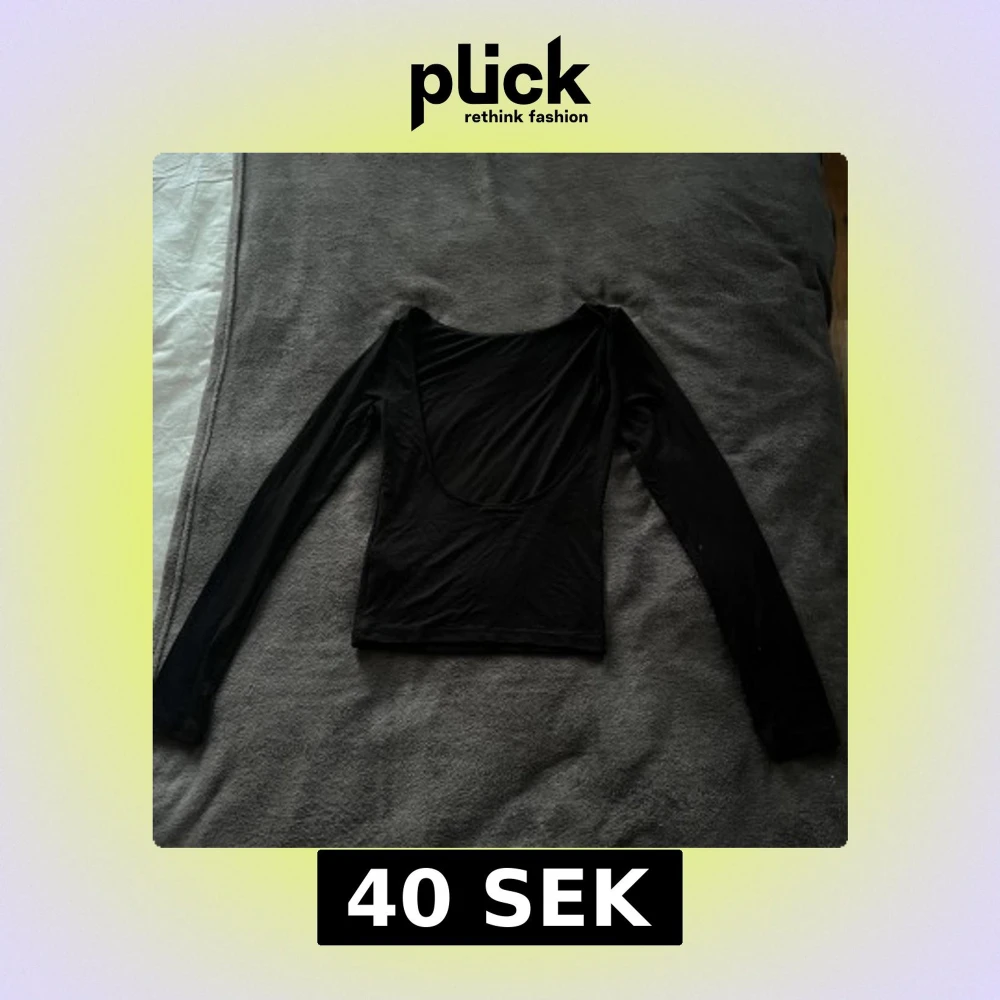 Säljer en stilren svart långärmad topp med djup urringning från Gina. Perfekt för en elegant look. Passar bra till allt. Aldrig använt pga för stor för mig. Storlek S
