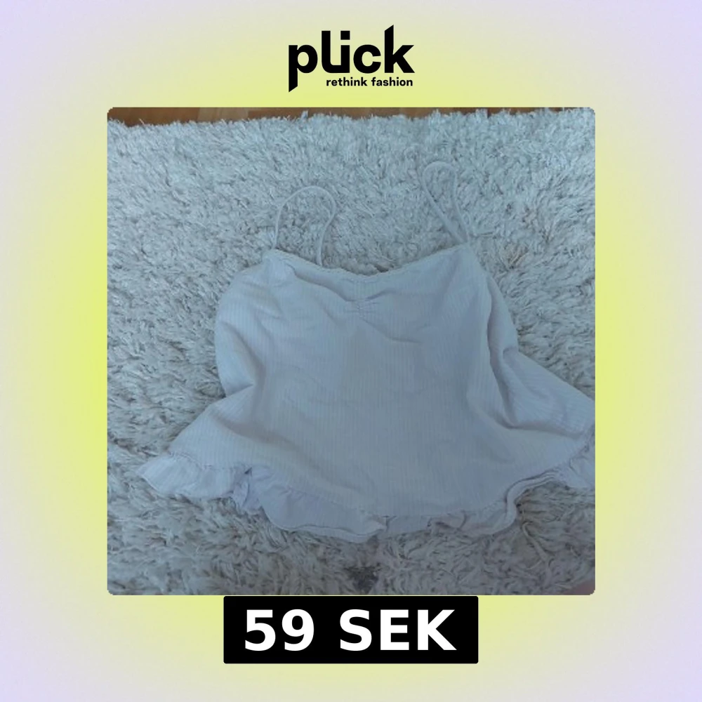 Säljer en söt vit randig linnetopp med smala axelband och spetsdetaljer vid halsringningen. Perfekt för varma sommardagar. Toppen har en luftig passform och en lätt volang vid nederkanten. Kommer inte till användning längre så säljer den.
