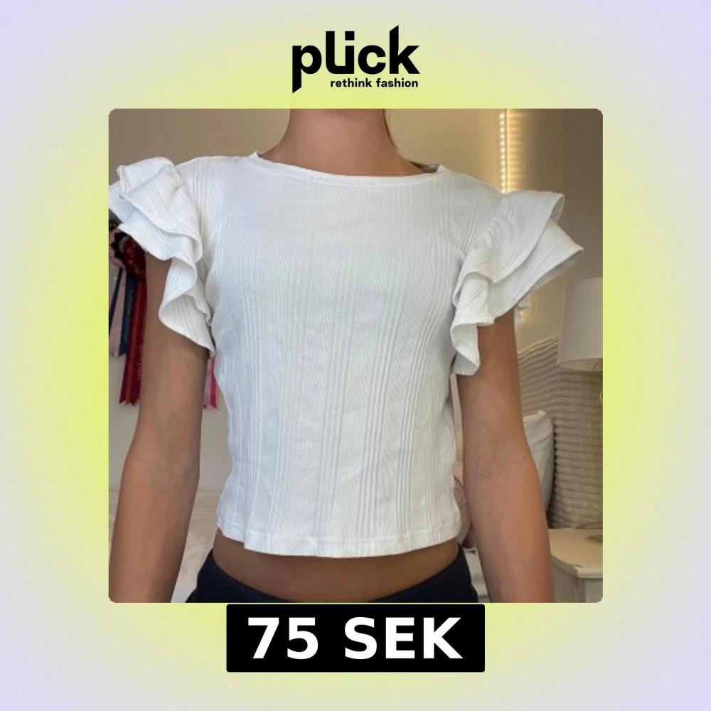 Superfin vit topp med ribbad struktur och korta volangärmar, från Gina Young i strl 146-152💗
