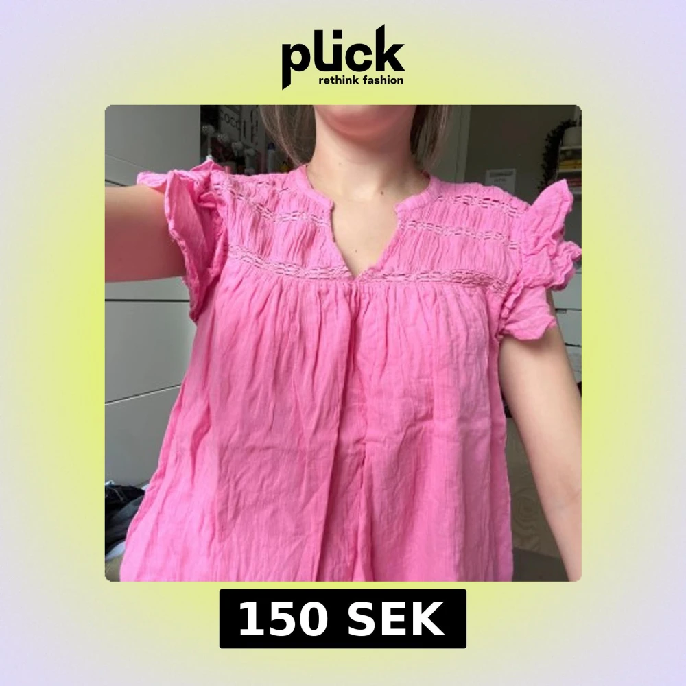 Supersöt rosa blus från Gina Tricot med volangiga korta ärmar och broderade detaljer upptill. Blusen är luftig och har en lätt rynkad struktur samt v-ringning. Perfekt för dig som gillar en feminin och chill stil.