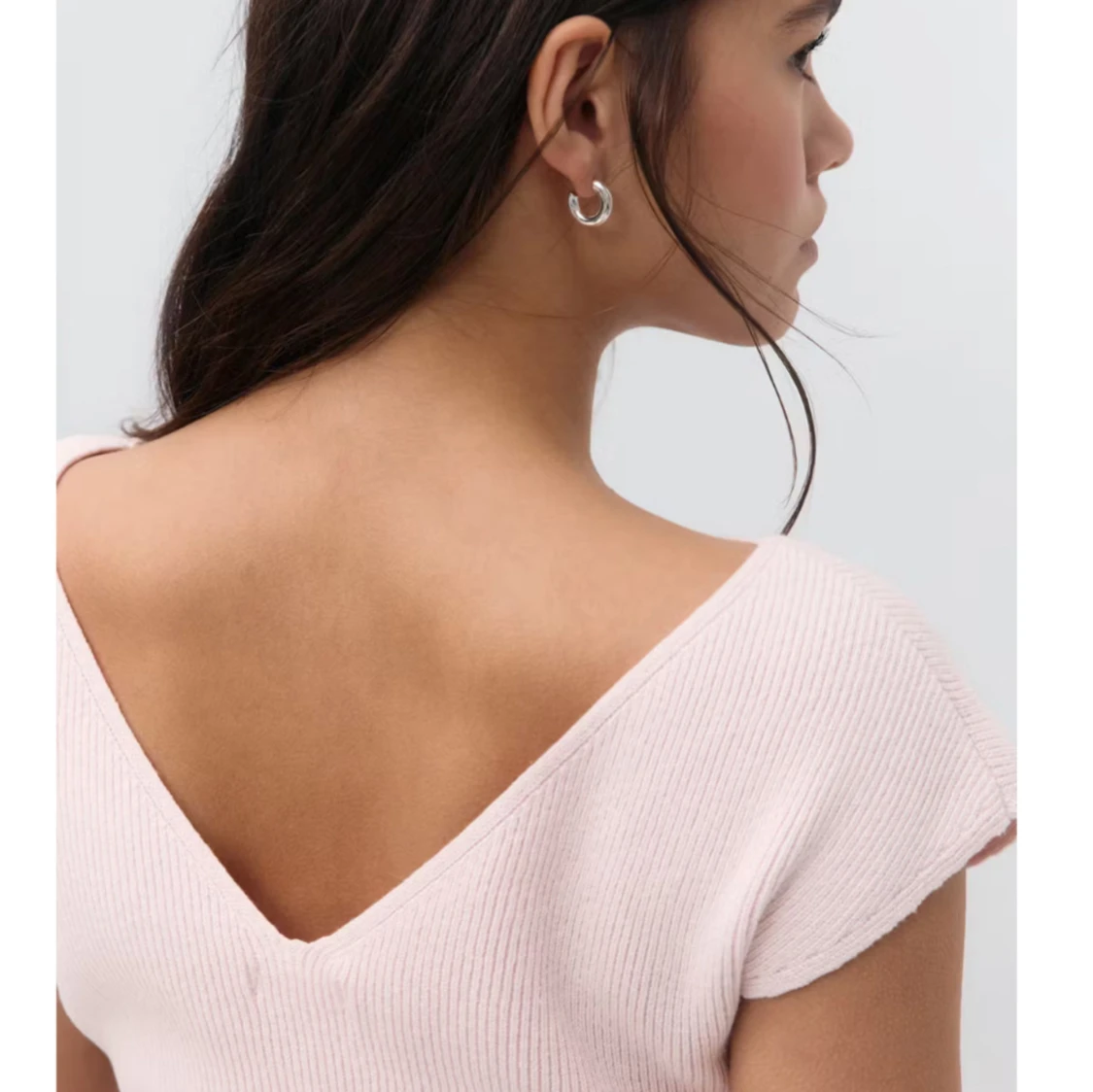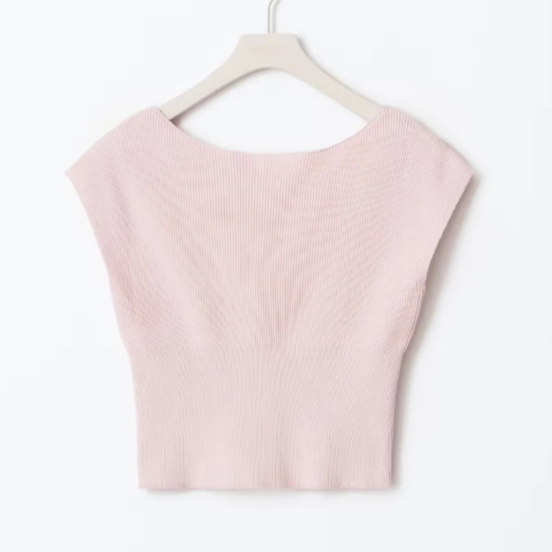 Säljer en ljusrosa figursydd topp med ribbad struktur och v-ringad rygg. Aldrig använd endast testad❤️