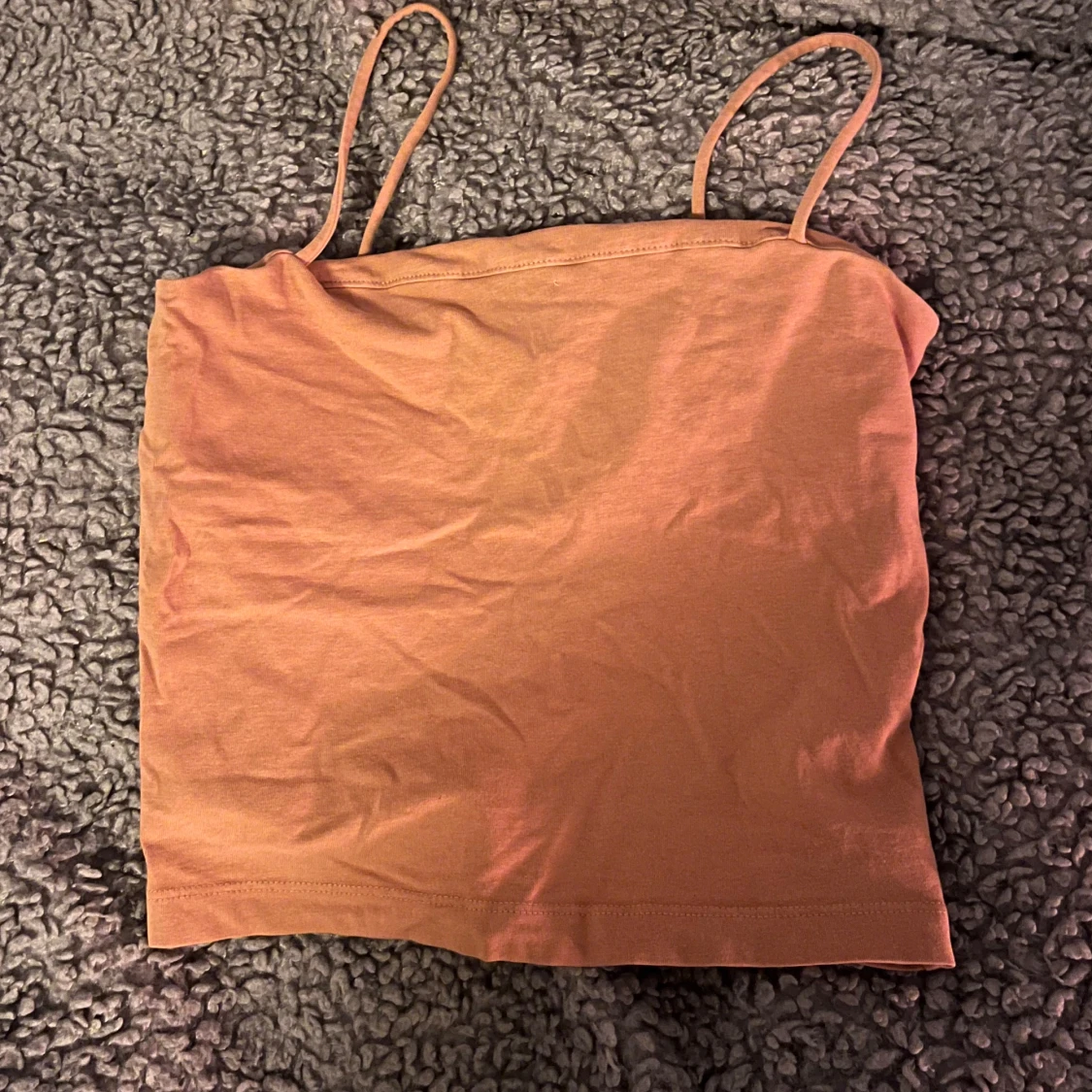 Säljer en enkel och stilren brun tubtopp med smala axelband. Perfekt för varma sommardagar eller som ett basplagg i garderoben.