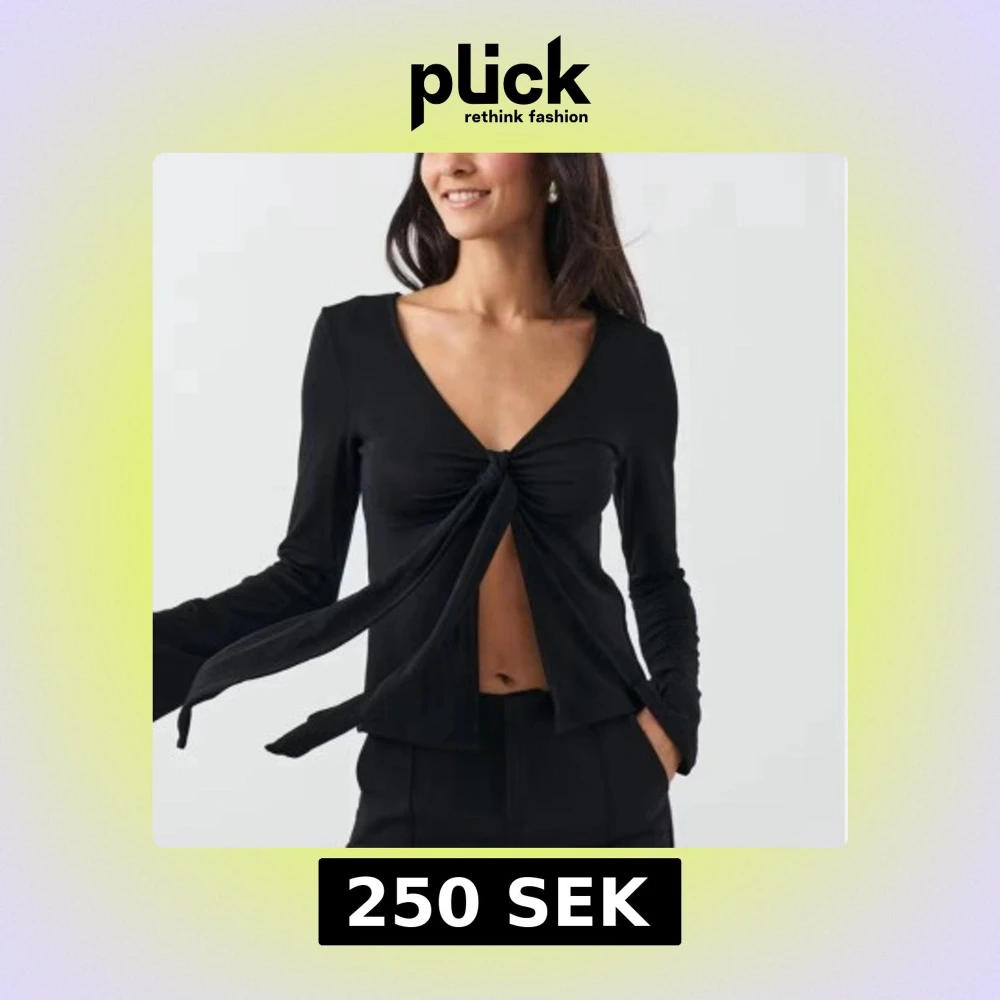 Svart långärmad topp med djup v-ringning och knyt framtill som skapar en snygg omlott-effekt. Toppen är croppad och har en öppen detalj vid magen. Perfekt för dig som gillar trendiga och stilrena plagg med lite edge.