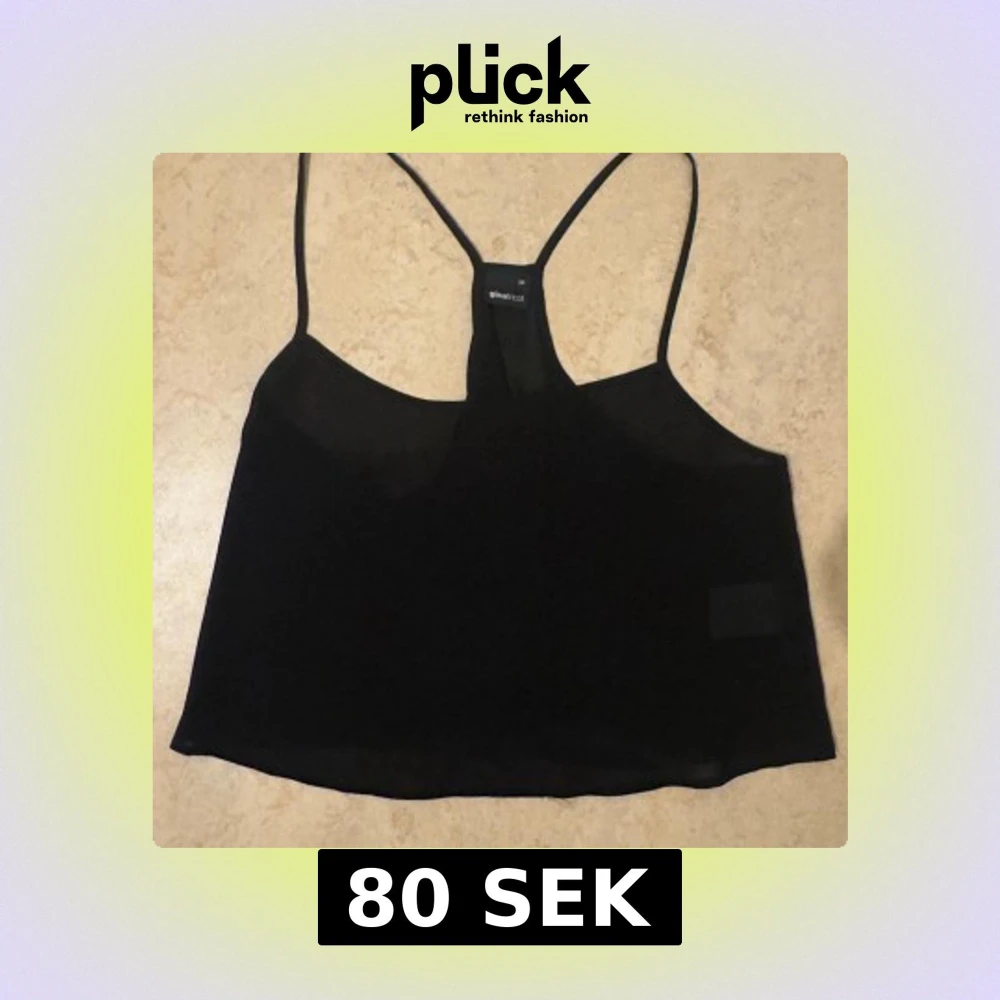 Svart, tunn och transparent linnetopp från Gina Tricot med smala axelband och rak passform. Toppen har en enkel, stilren look och är tillverkad i ett lätt och luftigt syntetmaterial. Perfekt för lager-på-lager eller till ett par höga jeans.