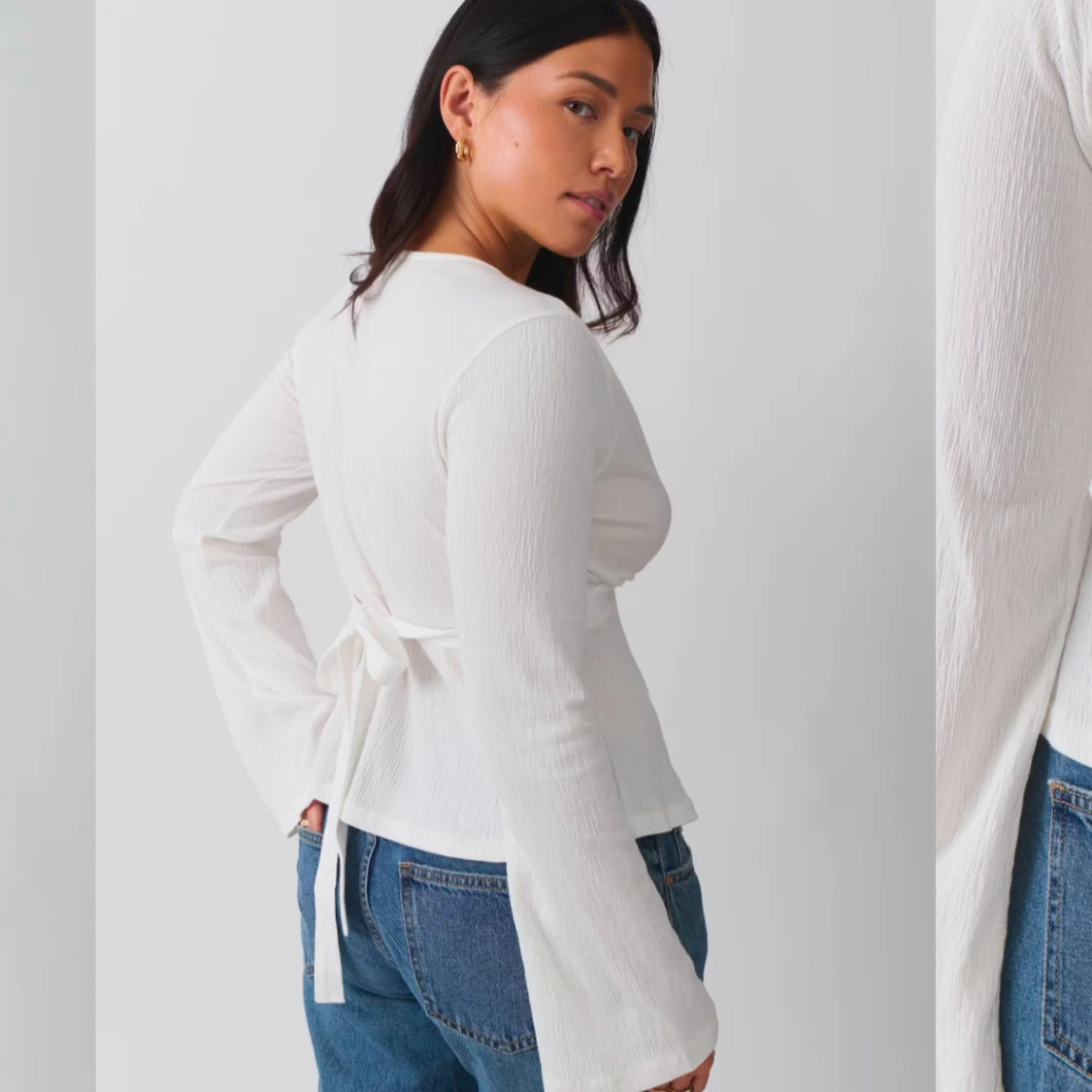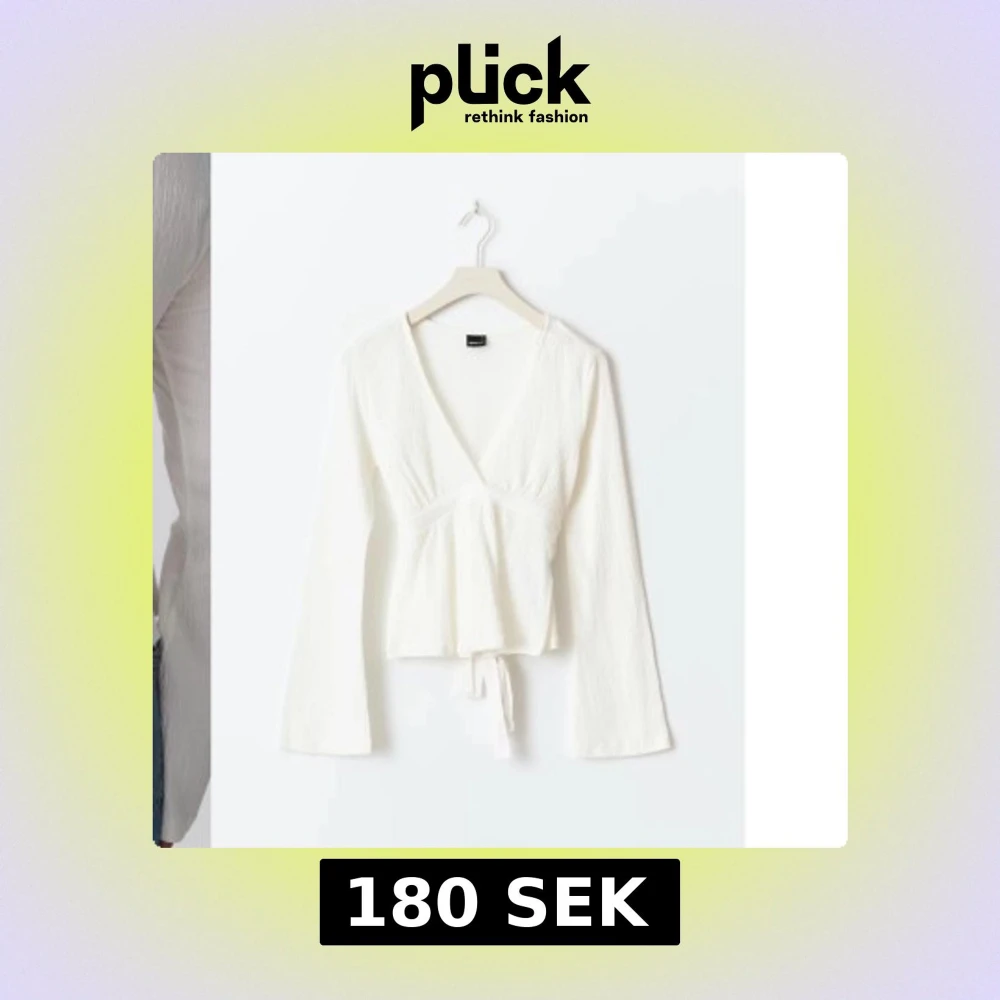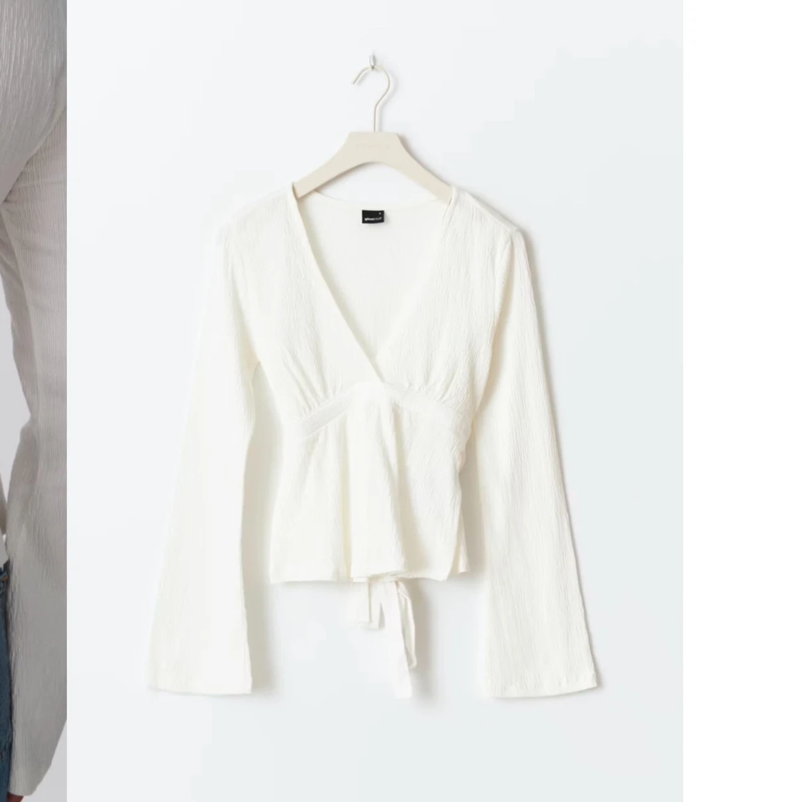 Vit fin tröja från Gina tricot som man kan knyta i ryggen. Ärmarna är även lite utsvängda. Älskar tröjan men den är tyvärr för stor😊jag har använt den3-5 gånger.