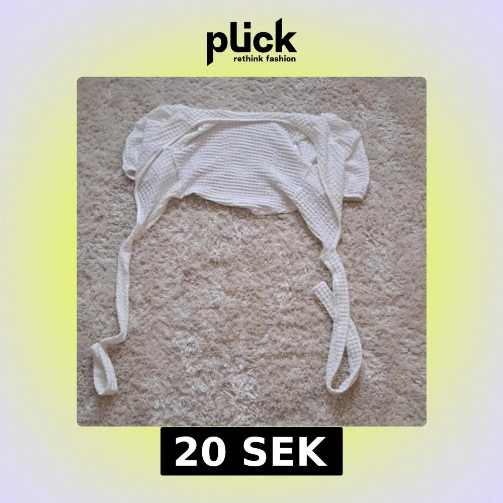 Säljer en vit bolerotopp från Gina Tricot i ett våfflat, mjukt material. Toppen har korta ärmar och knytband framtill, perfekt för att lägga till en extra touch till din outfit.