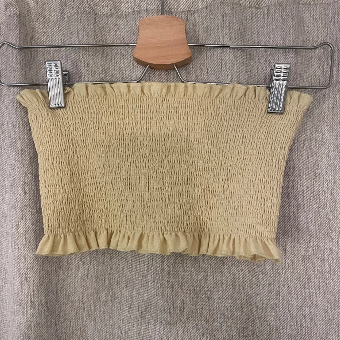 Gul bandeau top ifrån ginatricot i strl M, toppen är liten i strl så hade nog passat en S också💛