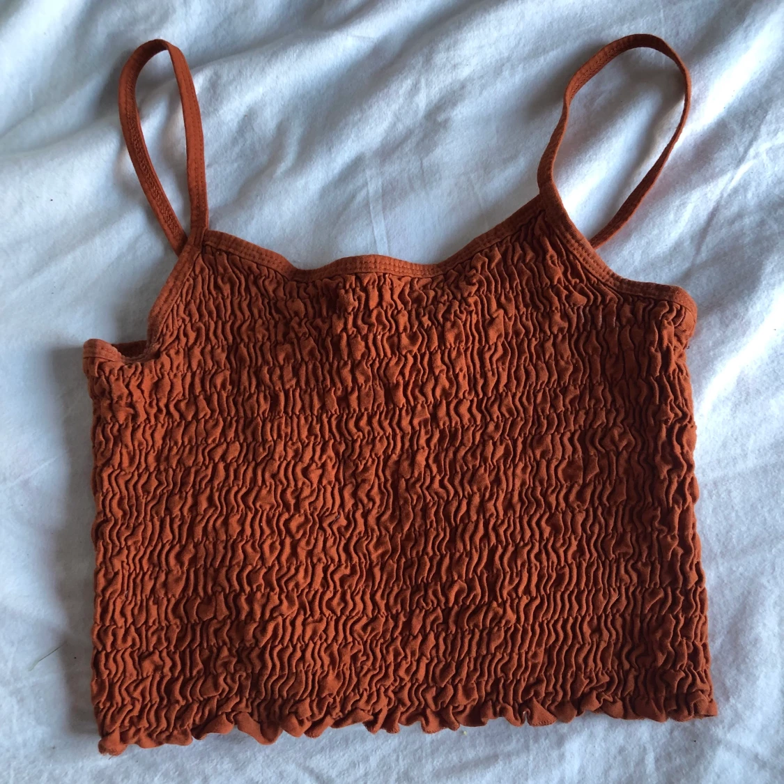 Söt brun/orange crop top från ginatricot, använd 2 ggr så är väldigt bra skick. Toppen går över naveln. Köparen står för frakten😊 st, s