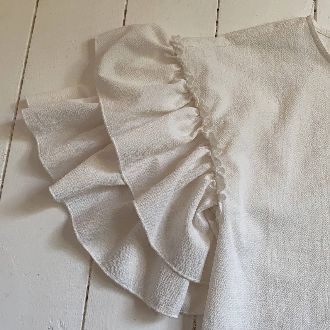 Säljer denna superfina tröja då den inte riktigt passar min stil längre, så att någon annan kan passa i den!! Den har väldigt fina volanger på ärmarna i tre olika storlekar. Tröjan är bara använd en gång så den är som nyskick!! 💖