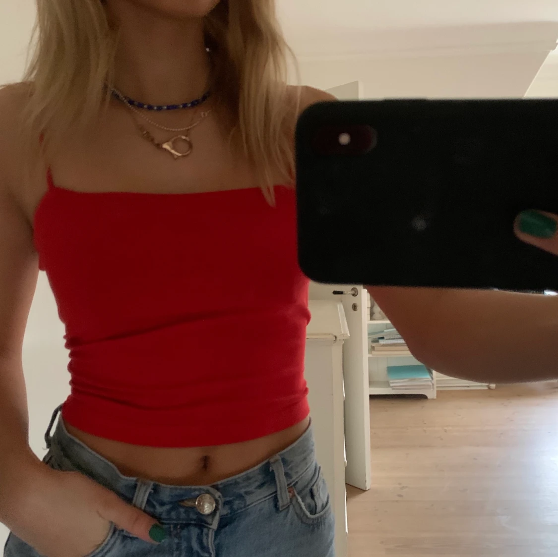 Jättegulligt rött linne från Gina med spagettiband✨💓