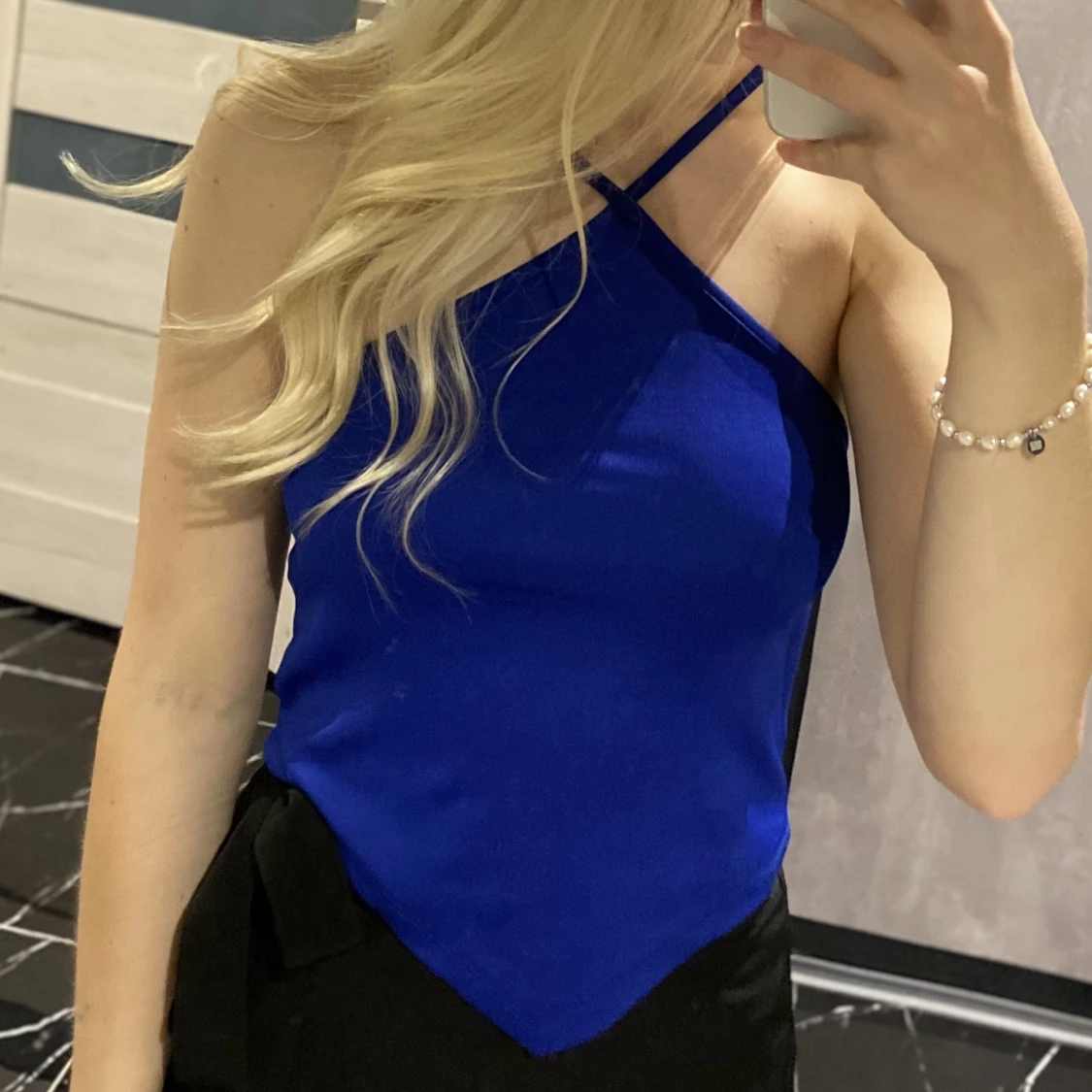 Blå festligare tröja från Ginatricot. Aldrig använd så i nyskick. Passar XS/S